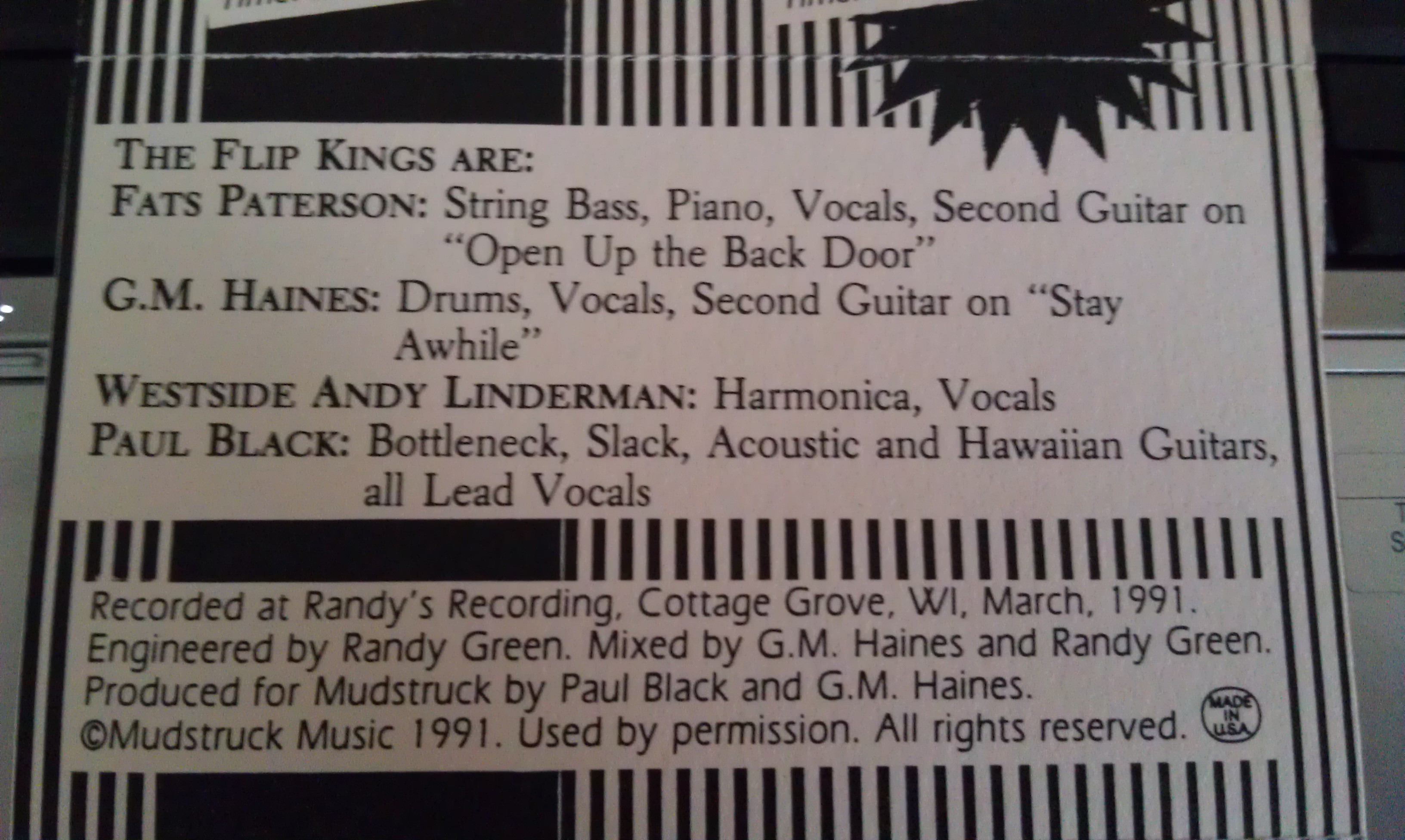 Anyway, the tape “Paul Black and The Flip Kings – Don’t Make Me Get Up” was recorded at Randy’s Recording in Cottage Grove Wisconsin, also in 1991.