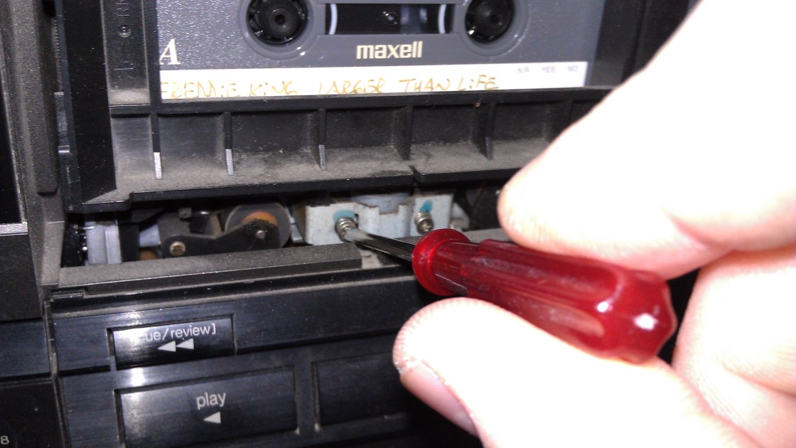 Of course, my current tape deck (shown here), on top of being a dubbing tape deck is an auto-reverse tape deck, so there are actually 2 screws per play head. The process is the same. Unfortunately, the recording side is broken and this side, the regular play side is dying… maybe I’ll get a used one just to play the classic tapes that remain in my collection.