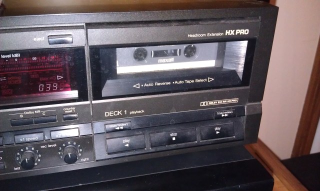 I have had several tape decks in my life. A few hand-me-downs, a few purchased new, no awesome Blaupunkt or high dollar jobs, but all have played some of the best music I have ever owned. They were functional and needed for the tape trading I did. They were/are a vital piece of equipment for those of us born before CD’s. My kids grew up listening to my tapes on my tape deck, but have never owned one, unless it was on a boom box. In fact, none of my kids have ever owned a stereo. That fact just hit me. For them it was boom boxes, and now Zunes and I-Pods and docking stations and even Abbey’s record player is a stand alone with a speaker built in. No receiver. No equalizer. No tape deck. No stereo. Hmm.
