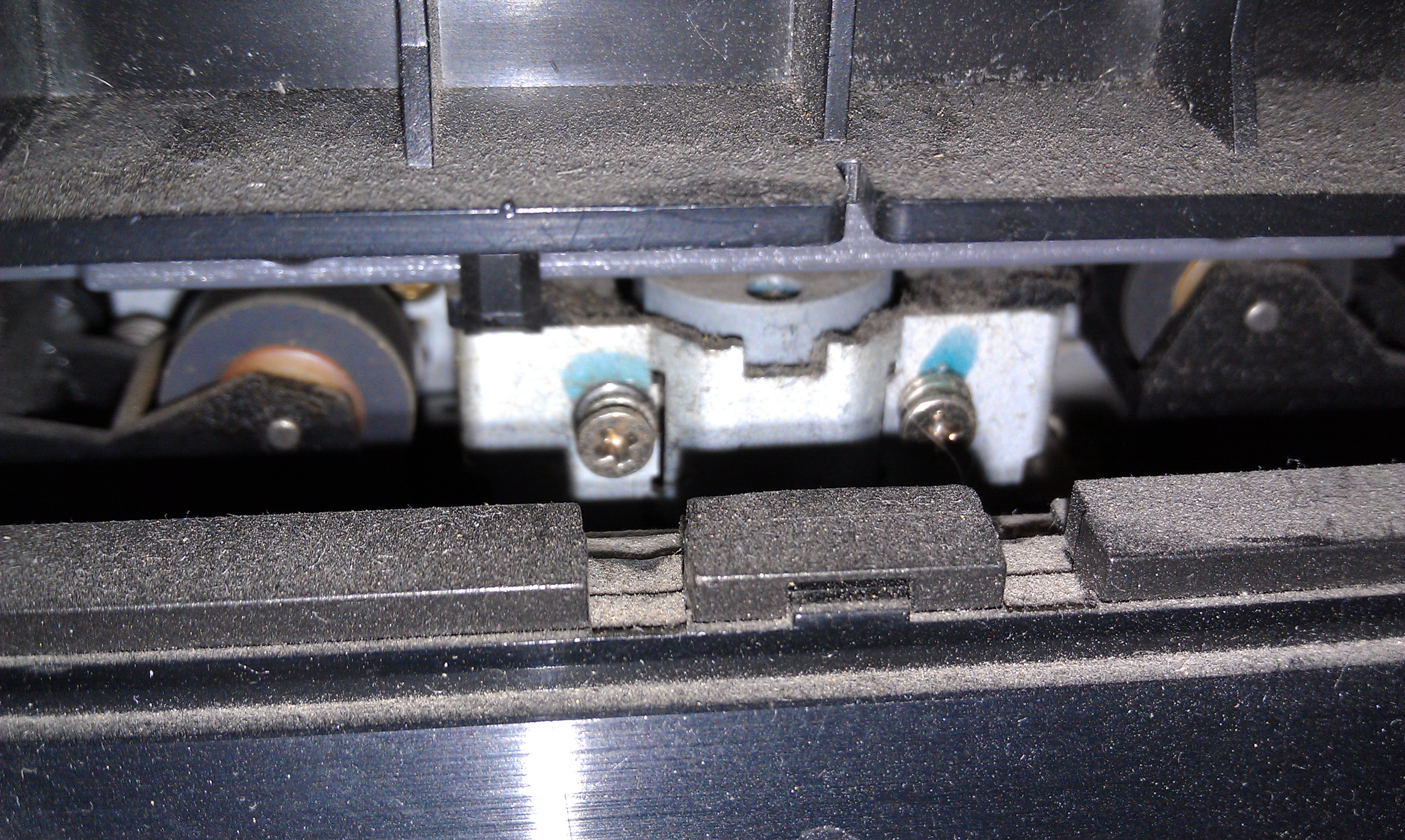 Access to tape head mechanism set screw. Pardon the dust.