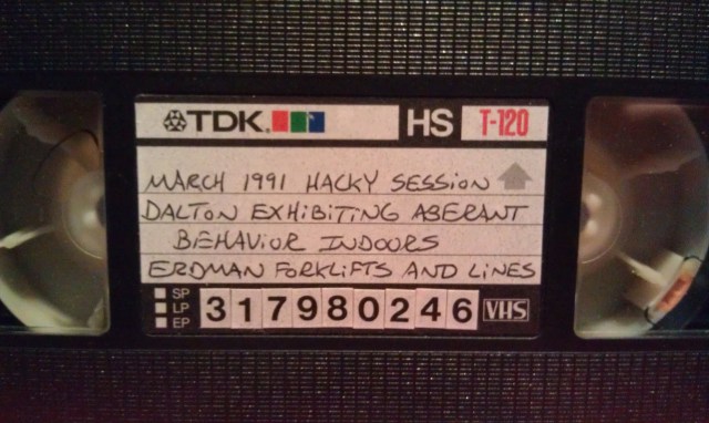 I recently digitized a disintegrating VHS tape that was loaded with various histories. There was video of me driving my forklift back in the Erdman days and 27 minutes of Dalton and I playing hacky sack in the cold March air in back of the townhouse.