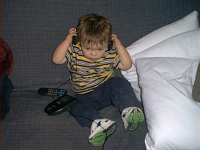 Here is a photo of Joey trying to jam to my MP3 Discman. This was a breakthrough in sheer volume of music I could put on a CD. This played burned CD’s and so I filled CD’s with 10 – 12 albums in MP3 format. Hours of music on 1 CD. At the time, it was groundbreaking. After a few years the display stopped working so you had no idea what track or album you were selecting to play.