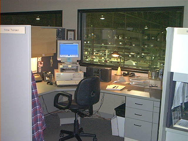 In 2001 I was straddling 3 different worlds. I had store bought CD’s, MP3 discs that I played on my MP3 Discman, and I had my work computer hard drive filled with MP3’s and used Winamp to play them over headphones. I was also still listening to tapes, as you can see by the sweet looking boombox on my desk. The large drawer you can see to the right of my chair was filled with tapes and CD’s. A bit of everything on hand for whatever mood struck me that day. Playing music on the PC went pretty well, only a few times I had problems. Once my PC got a virus, and I was convinced that it had come from my music downloads and that the Helpdesk police or the 3 man IT services crew were going to have me escorted out. It wasn’t me. A few other times my headphone cord pulled out and I was blasting music for the unwitting and unprepared engineering staff. Fortunately the few times that happened I wasn’t listening to anything scarring. This was my first cube job and I was on top of the world. Or at least the factory floor. Check out my sweet view of the assembly lines.