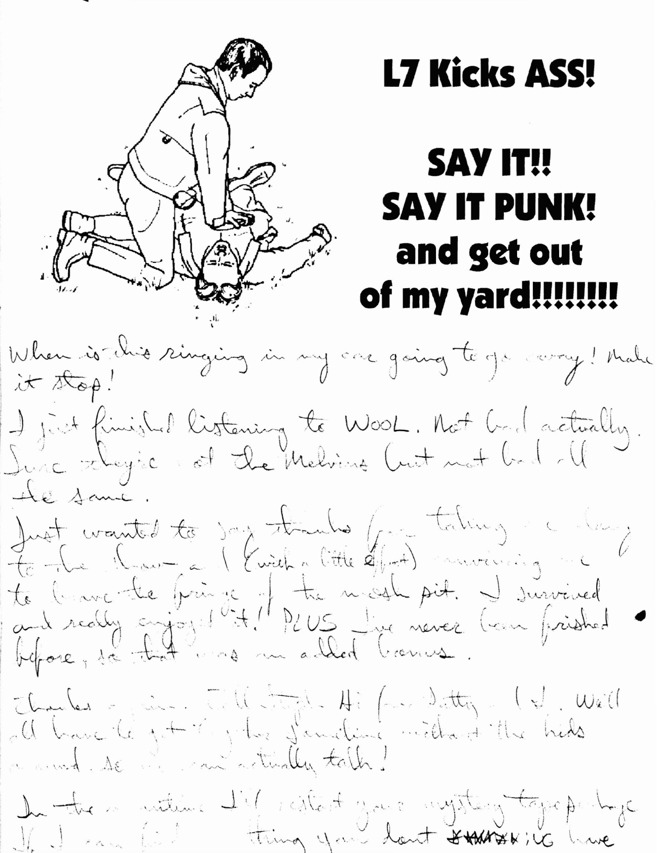 Don’t bother trying to read it too carefully. I merely submit it here as proof that I braved the edge of the mosh pit, was frisked, and that L7 broke my ears. At least for a while.