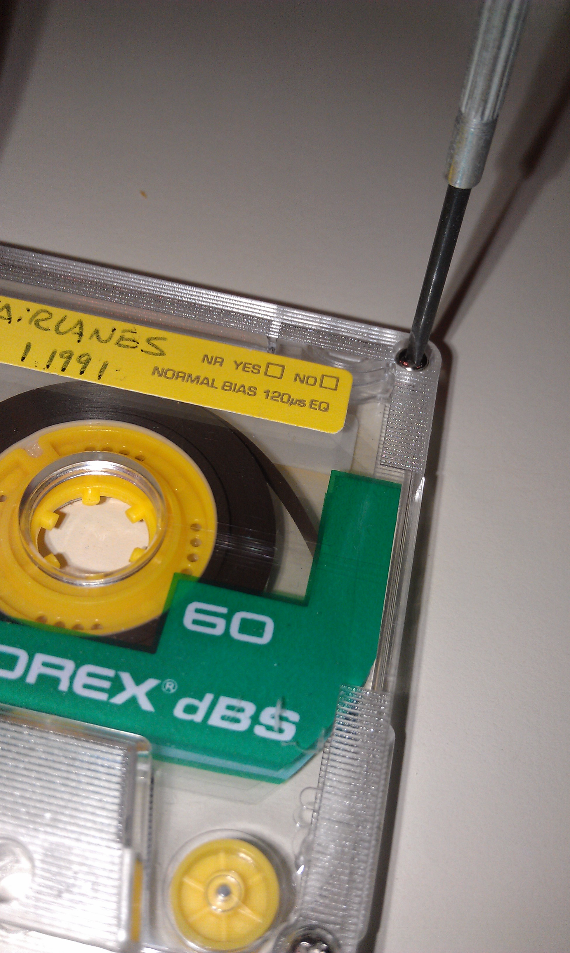 I was forced to try something that normally I don’t do. I decided to remove the thin plastic tape smoother. Usually this had exactly the opposite effect on the tapes and made the reels wind up all crazy. In this case though, since the tape was only going to be played lying on it’s side and auto reversing, it might do the trick.