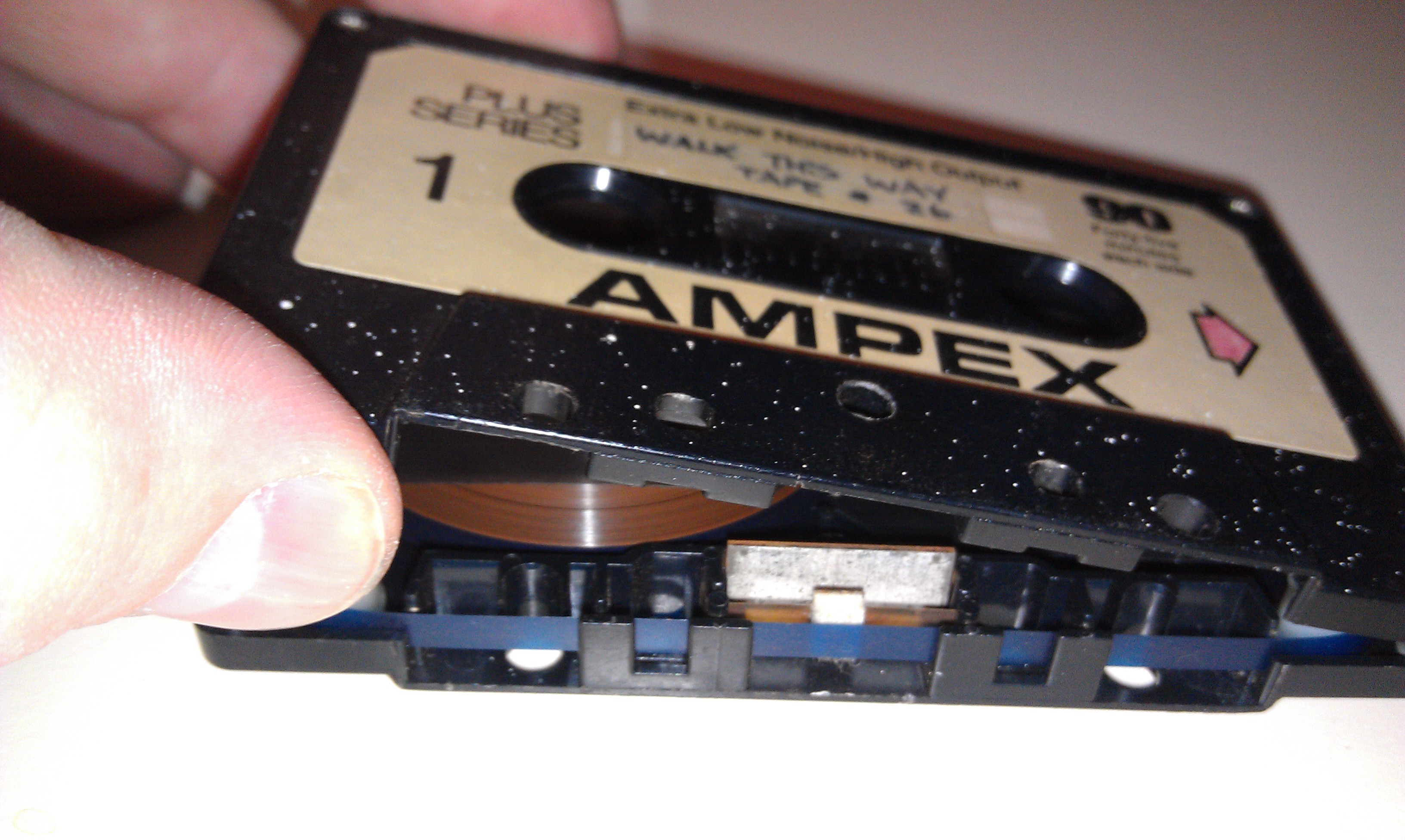 I have had a few tragedies during this procedure in the past. I’ve had the tape reel collapse then have to be rewound by hand with a pencil, or had the tape crinkle and end up worse than it started. At the very least you want to avoid touching the tape. Good tapes have a nice little leader strip like you see above.