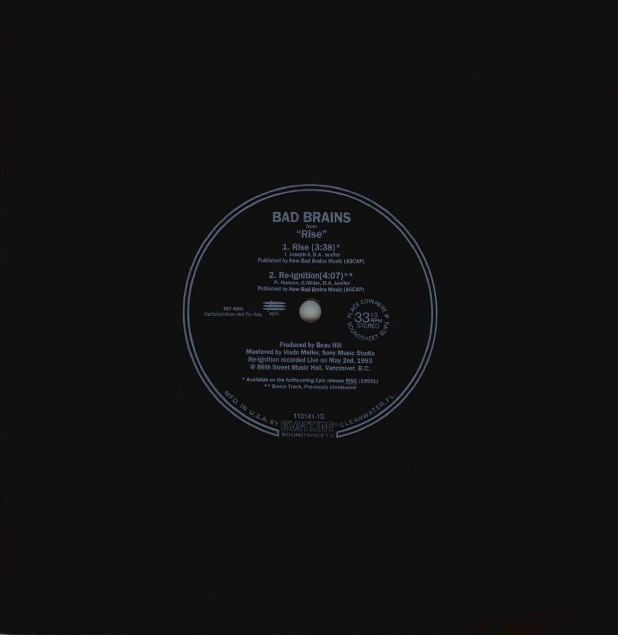 The sound was clearly not good, and a novelty only. However, this Bad Brains flexi-disc is from within the last decade, so they do still exist here and there. I believe this one came from a magazine. The edge is perforated to tear out.