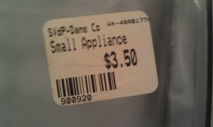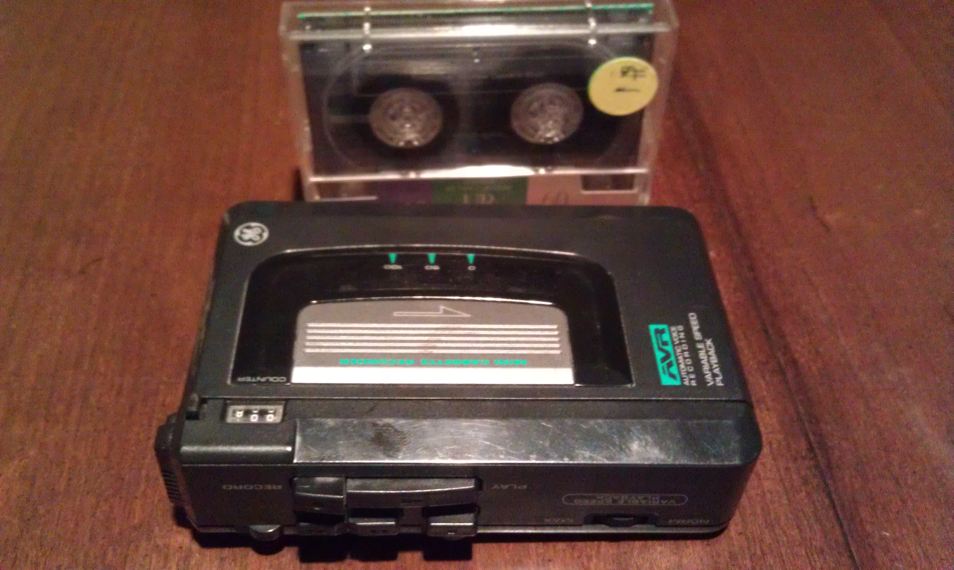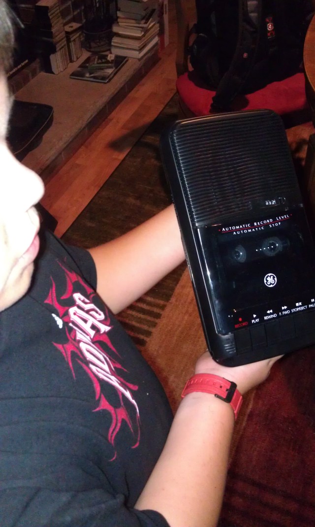 I recently stopped at the St. Vincent De Paul in Waunakee and was surprised to find that they had tape decks for less than 15 bucks (even a dual tape deck). I was distraught when my dual tape deck died. I only have 30 or so tapes that I cannot part with even though I have digitized them and there was no way I was going to spend over a hundred for a new one. Dalton gave me one of his 3 (thanks dude!) so I’m covered, but it never occurred to me to look for a used deck. I also saw something there that I had to buy. It was a big old school portable cassette recorder/player. Just like the old days of taping for Jeff.
