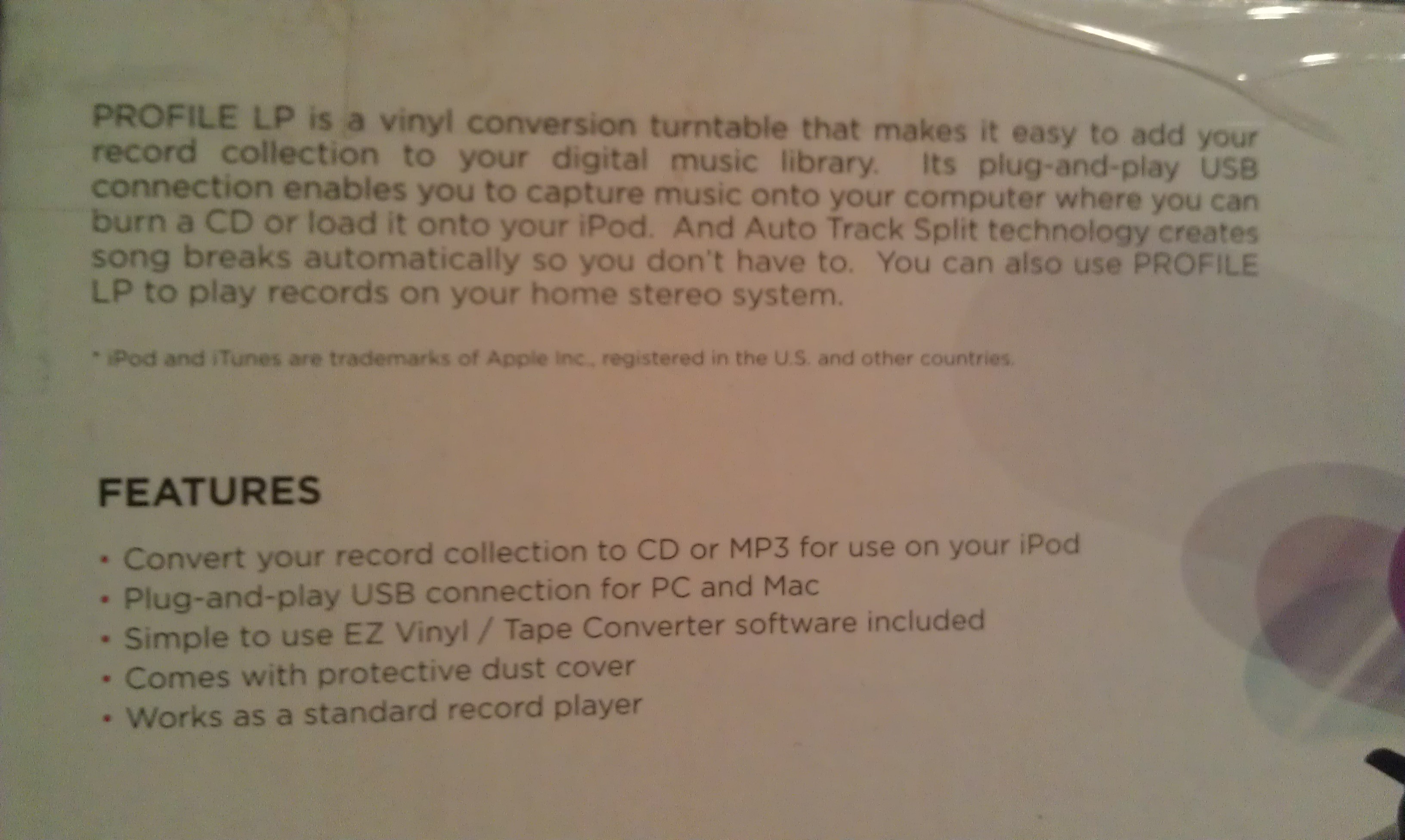 Then, believe it or not, they were selling a USB record player on Woot for $15.99 and $5 shipping. I knew that it wasn’t going to be Technics quality, but my records were all used and it would allow me to listen to Paul after I sent the converter back. She bought it for me. Thanks Cindy!