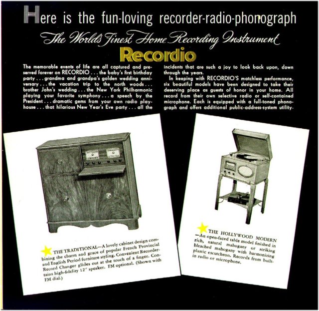 I did some research on this Wilcox-Gay Recordio Disc. It was a radio/record model that could record a record.