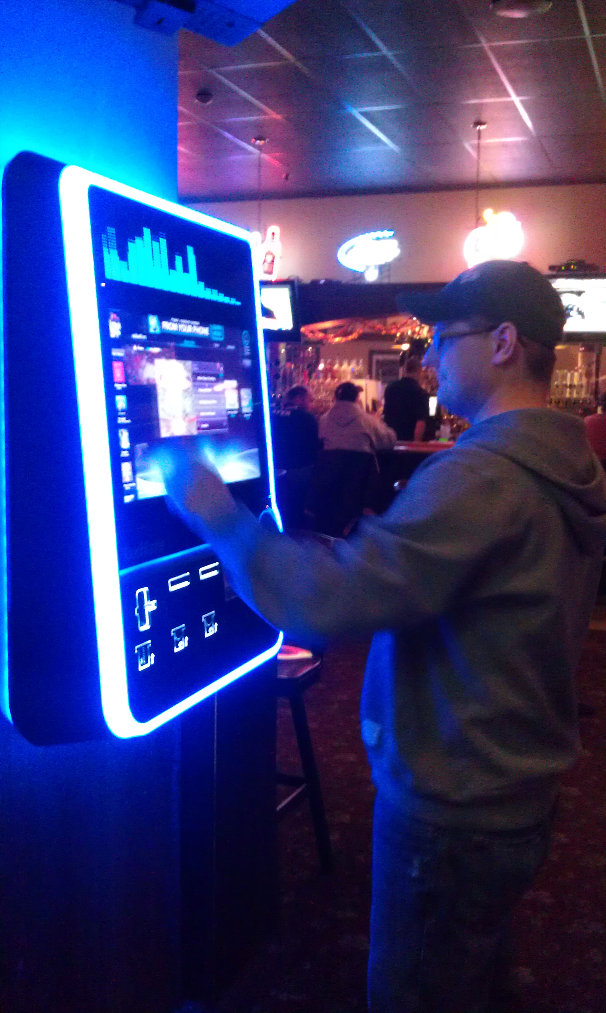 The jukebox here was basically a huge I-Pod. You could download tracks to it and search it by genre, or artist. You could search local favorites and create a playlist. It was amazing. Tracks were 2 for a buck or 5 for 2 bucks and on up. I played “Van Morrison – Brown Eyed Girl” and George Thorogood – One Bourbon, On Scotch and One Beer”. The music transformed the game.
