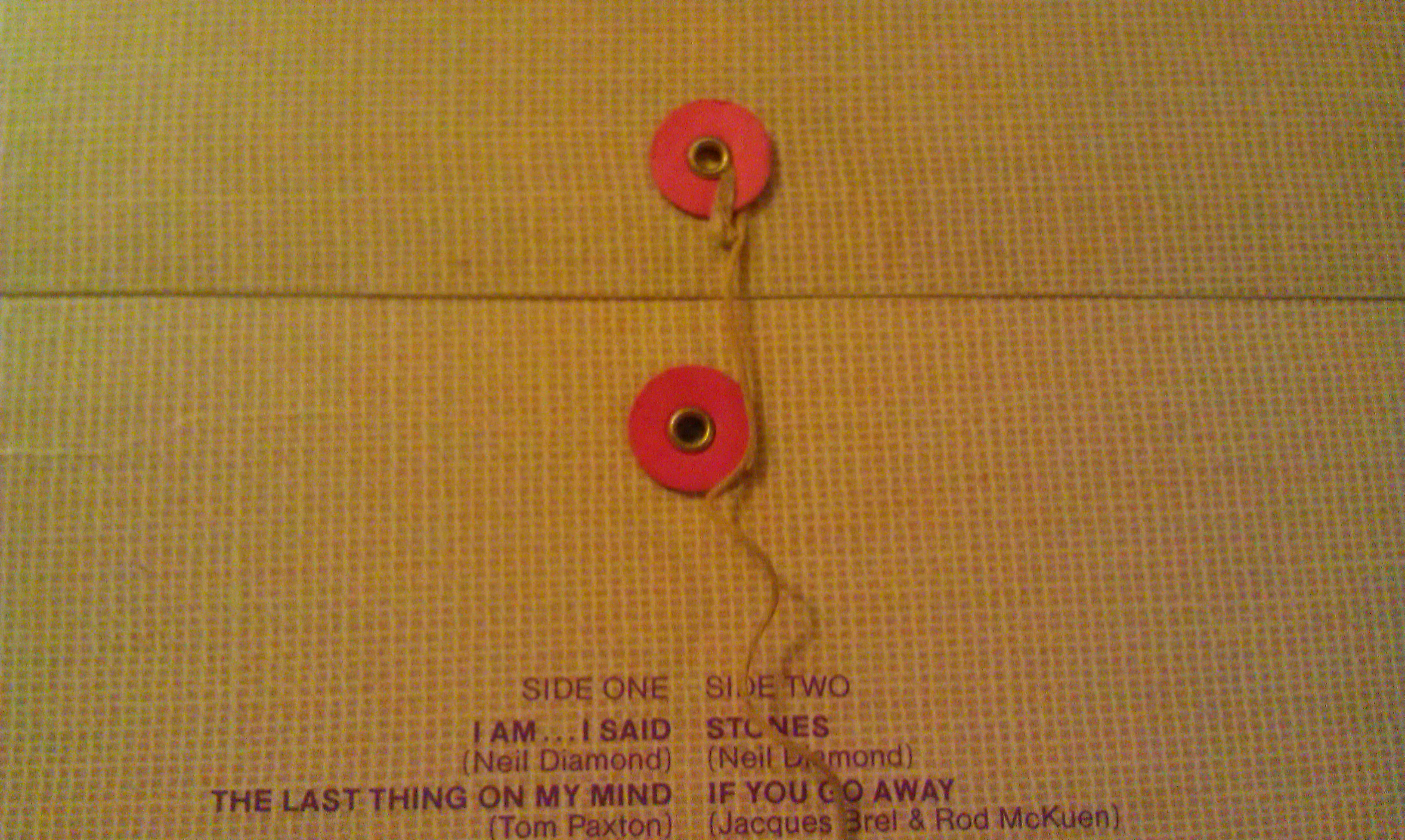 The string that you wrap around the eyelets to secure the envelope, or in this case record. I thought that that was cool and I have never seen this on an album before.