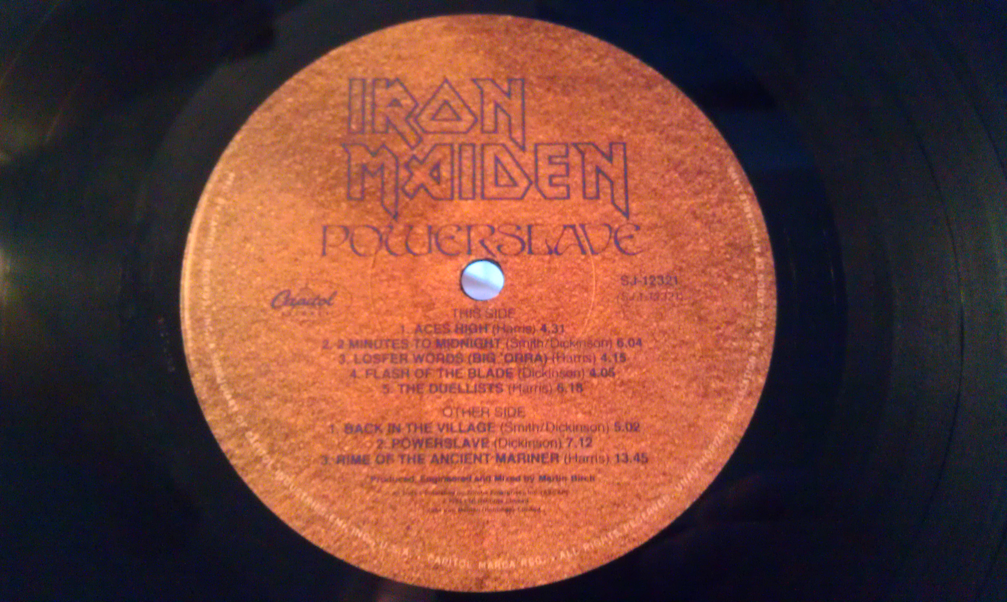 This is a cool record label as well. All the songs are listed on the side 1 label