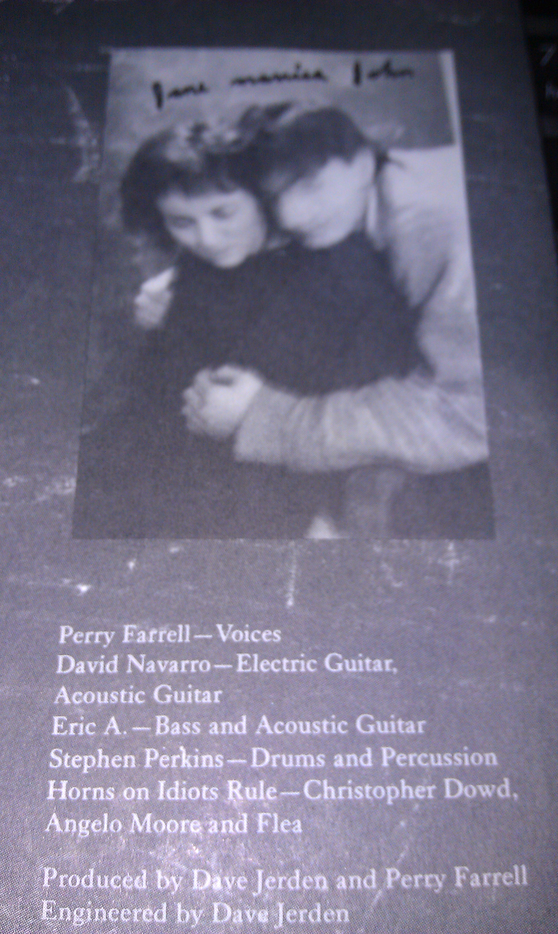 There is also a reference to Flea playing on the album for the song “Idiot’s Rule”. Horns. Not bass. Interesting. Above that is the Jane marries John photo. It is blurry like that on the sleeve.