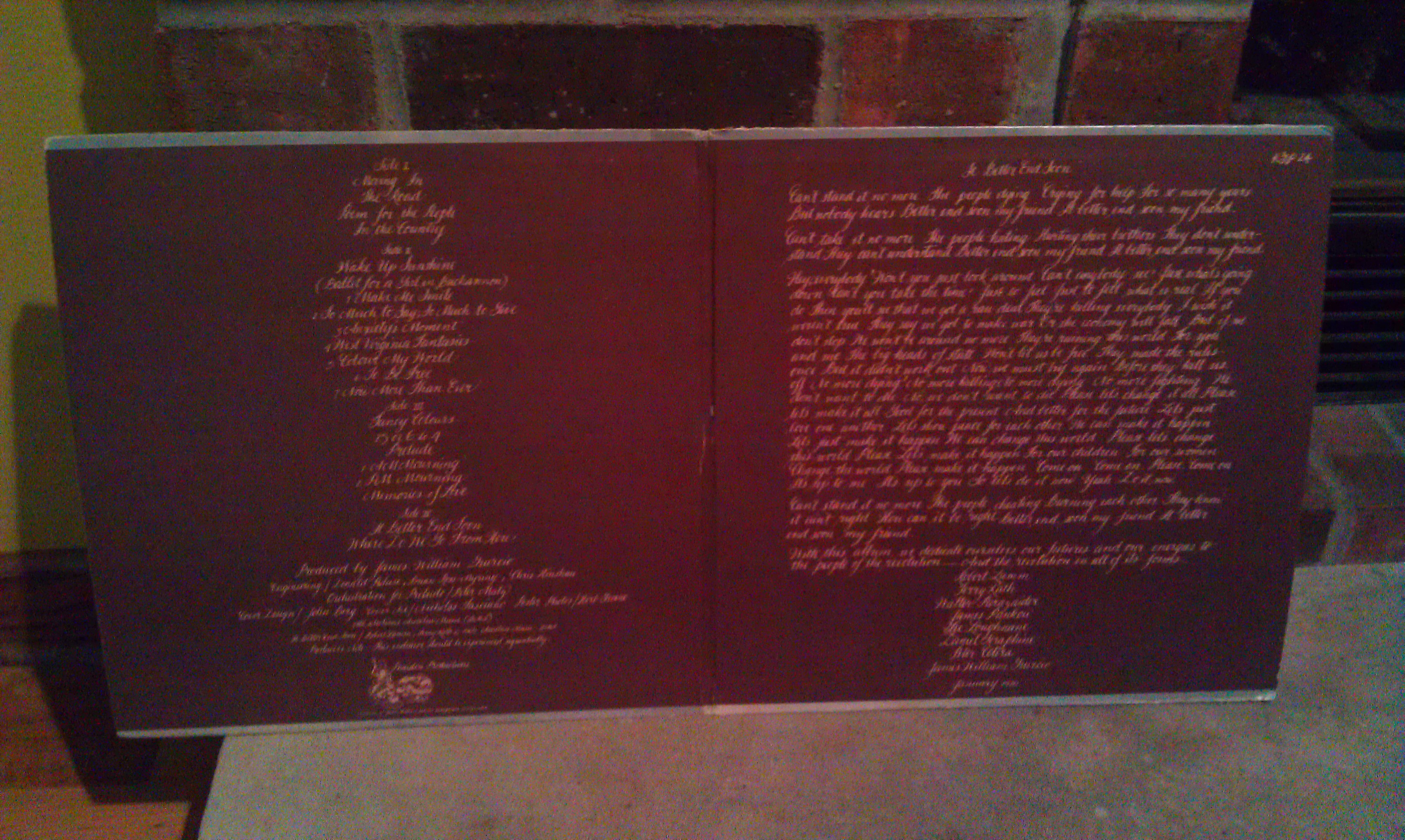 This is Chicago’s second album, despite the eponymous title. Pretty ballsy to release a double album on your second go round, but that is what they did. Now, when my mom and I lived in South Bend in the second floor apartment, we had a all-in-one stereo. There was an 8-track player and mom had a handlful of Chicago 8-tracks. Sort of the middle years. I was impressed with the music and thought quite a lot of it was good. By the time I hit High School though Chicago was making music that I could pass on with no qualms. I probably never would have given Chicago another chance had it not been for their first album. I saw it at the library in Roselle and noticed that on side 2 of their first album was the song “I’m A Man” and it blew my mind. They were covering Muddy Waters?! I was just starting my blues phase and I didn’t know that the song I was thinking of was really called “Mannish Boy” not “I’m A Man”. I checked the album out anyway and though the song wasn’t what I thought it was going to be, it was great! The whole album was good. I thought I would give this one a chance.