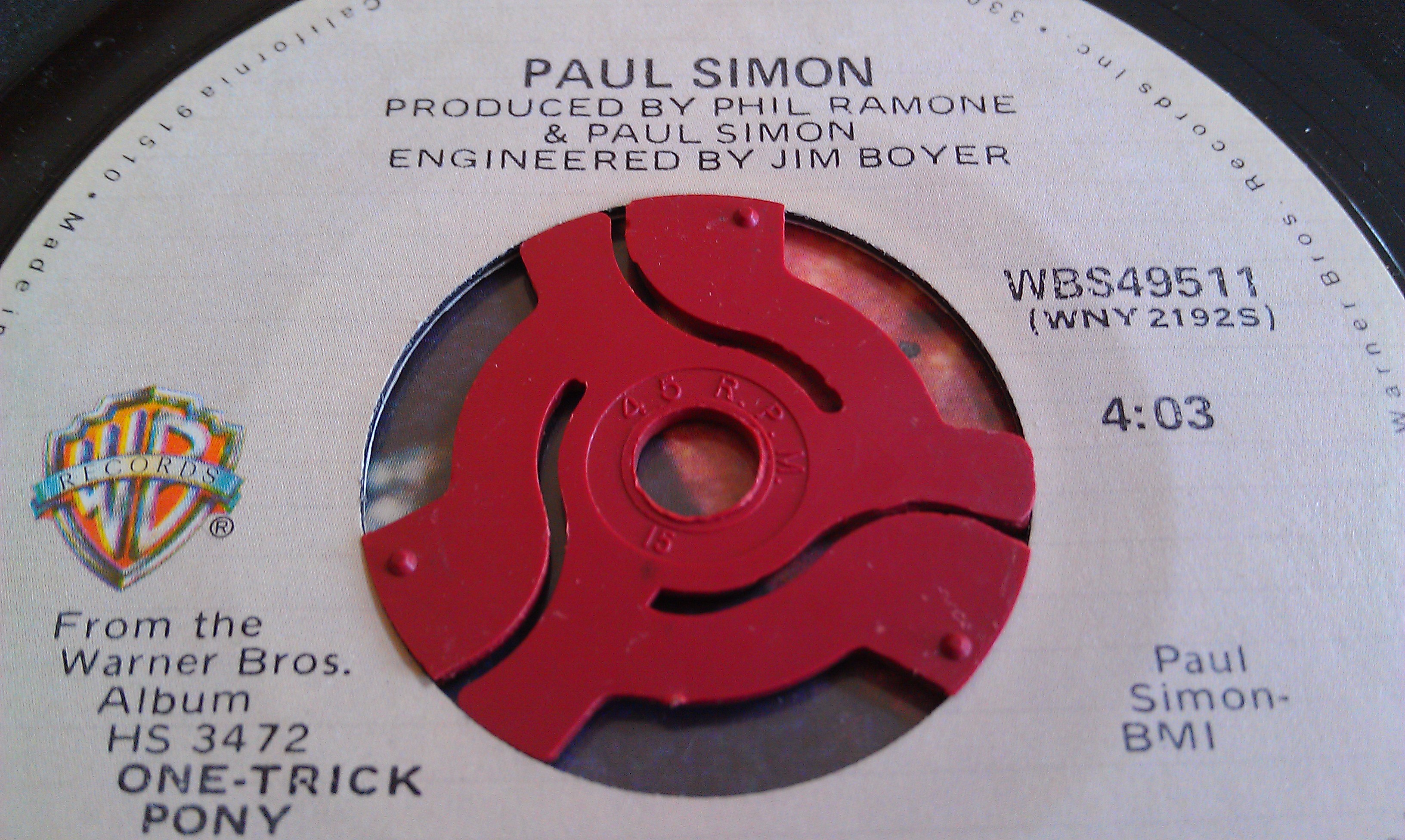 Most 45’s you find for sale at the record stores now are either stacked in a pile unceremoniously, or are just in plain white paper 45 sleeves. To find this nice Paul Simon was pretty cool.