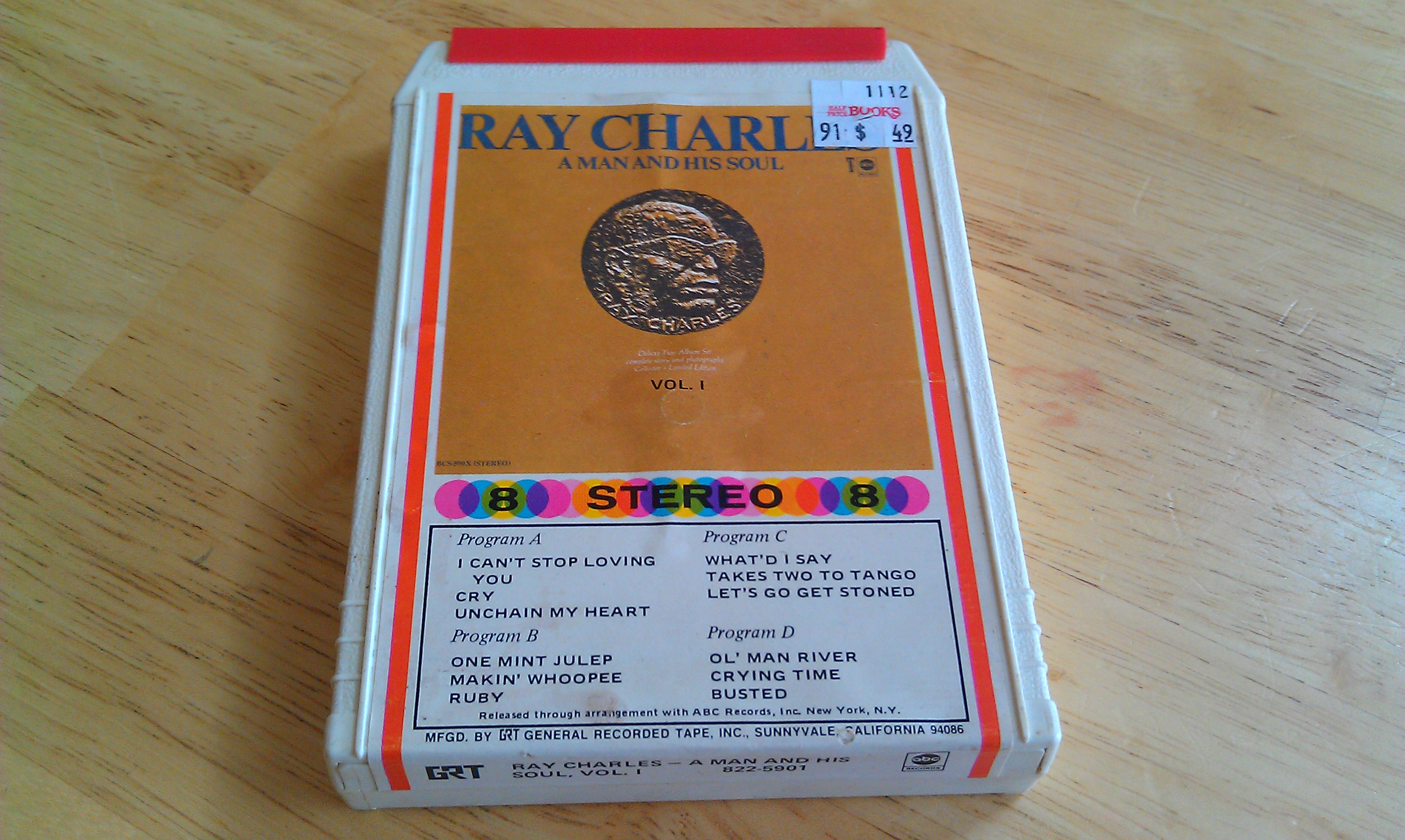 I occasionally glance at the 8-tracks at the places I go for records. They are usually awful selections that I wouldn’t touch in ANY format. The other day though, I saw one that wasn’t bad. And the price was .49 cents. I bought it just to say I have one.
