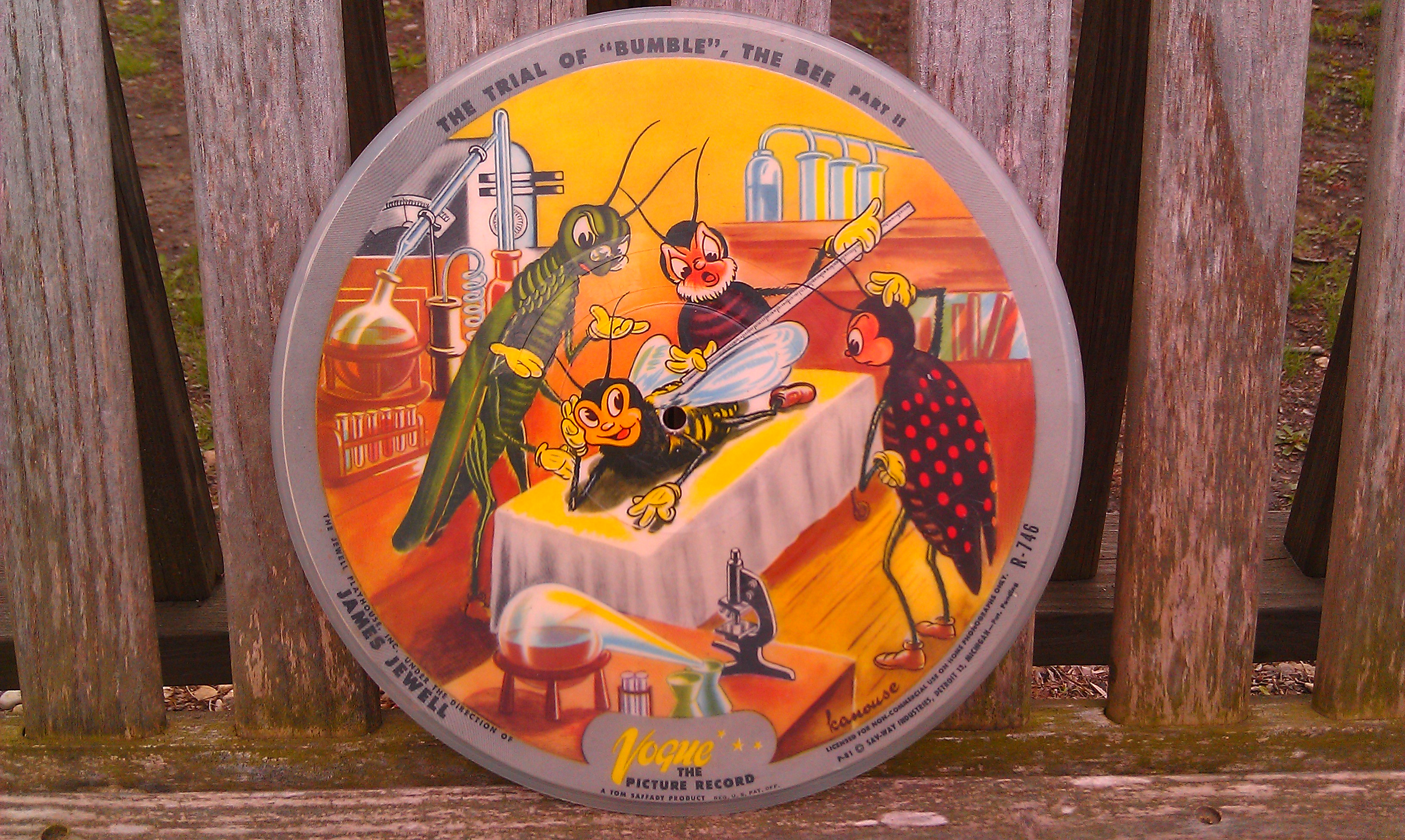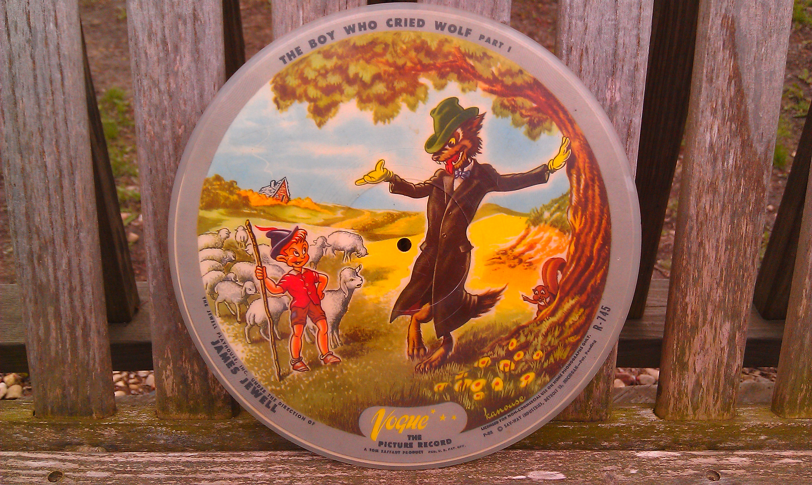 They are kids records clearly, and I thought that I could maybe make cool clocks out of them. Otherwise I might have passed on them. Turns out these are 78’s. They are Vogue picture records. Only 74 versions of these were made and they are quite collectible. Most are singles, this one happens to be a set. I’m glad I picked them up. They are worth about $30 bucks each. These are records R-745 and R-746 in the Vogue catalog.