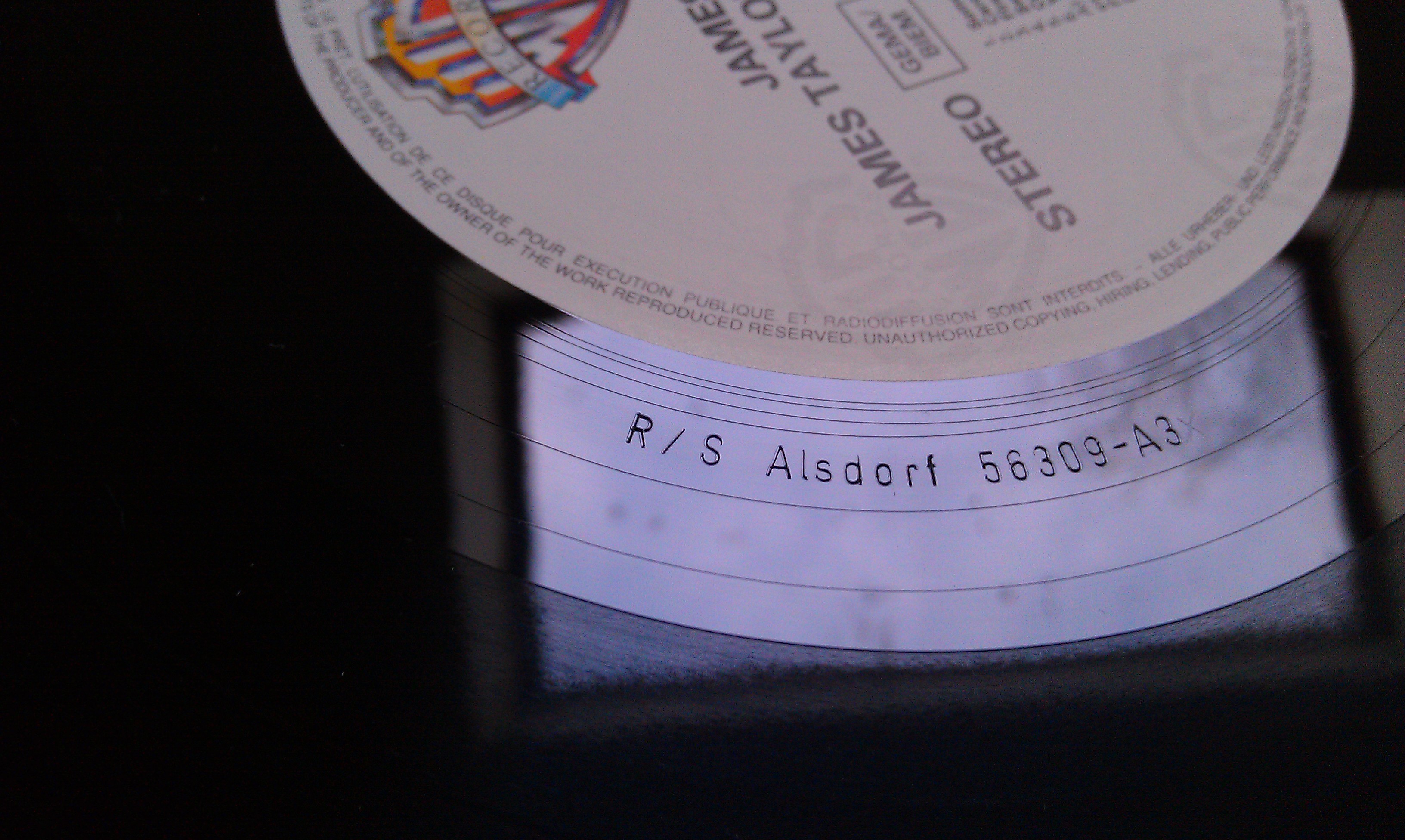 Turns out Monatnus is a German bookstore chain. They also had a records department. So this album is a German pressing of “James Taylor – Greatest Hits”. It was, according to the matrix stamp, pressed in Alsdorf.