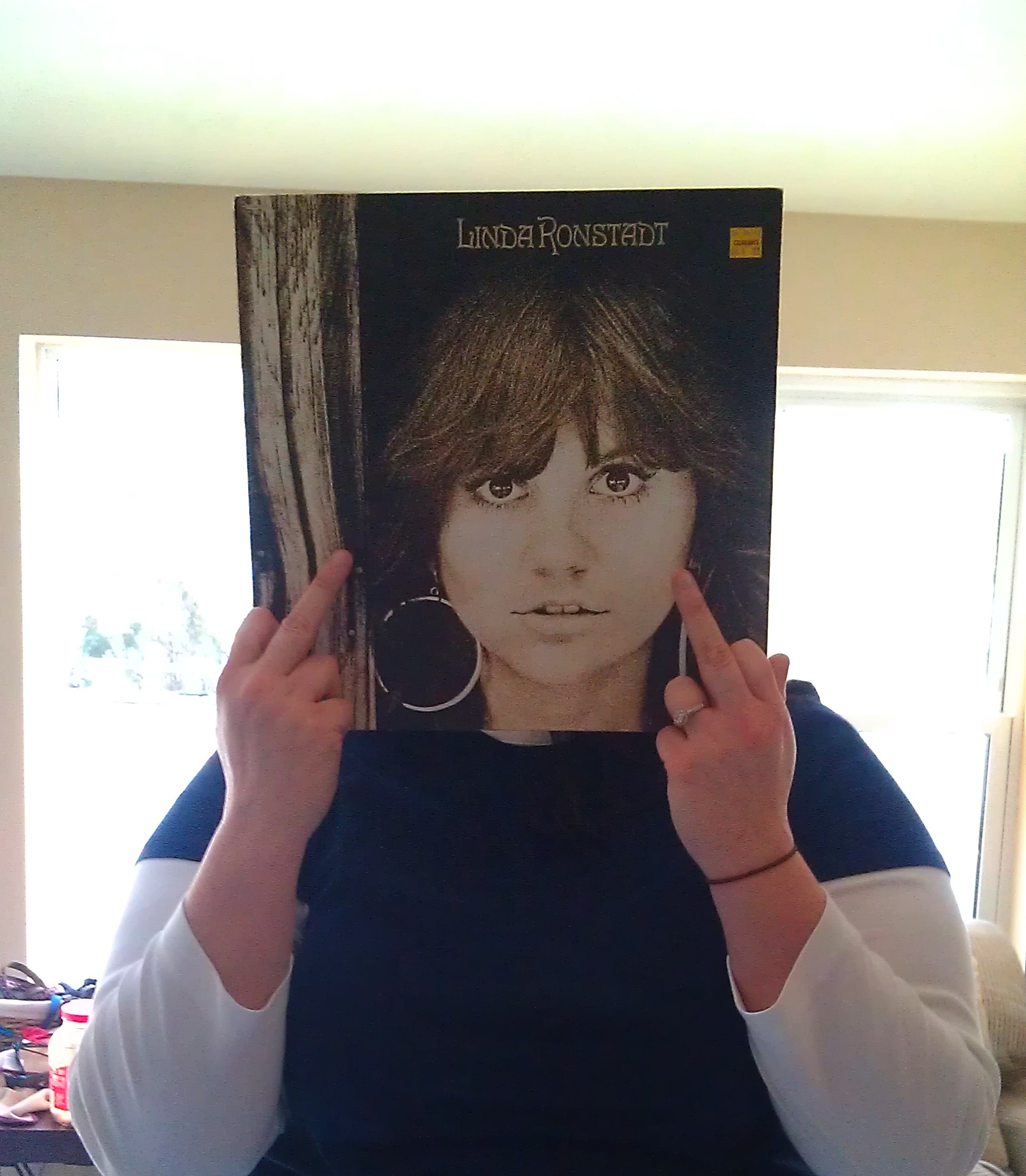 Cindy was reluctant. Of course I made her hold a Linda Ronstadt. One shot was all I could get, and this was it. That’s my girl.