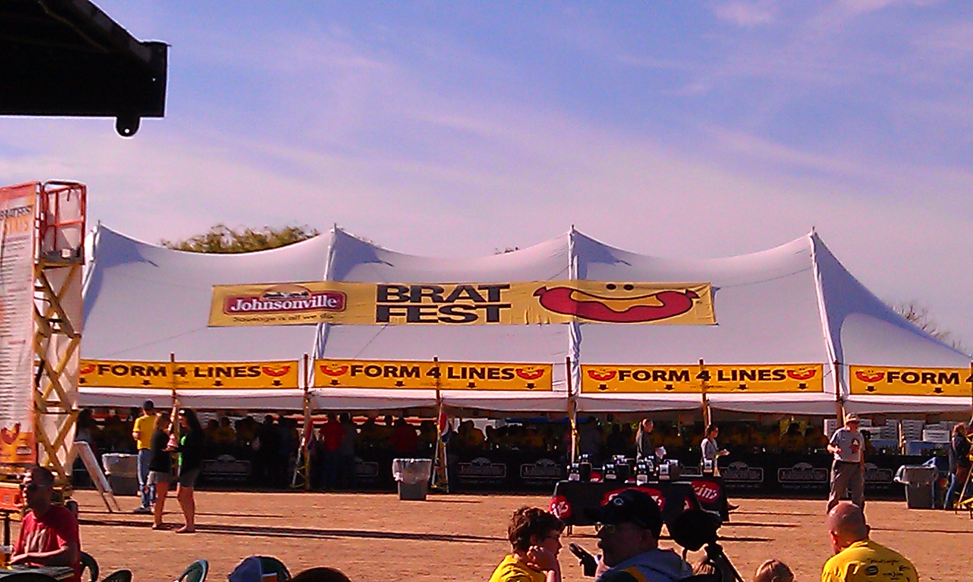 While we sat and ate our brats a man was playing some solo acoustic on the Baker Tilly stage near us. They are serious about the music here at the Brat Fest. I have seen the sets grow from basically platforms to stages like this one.