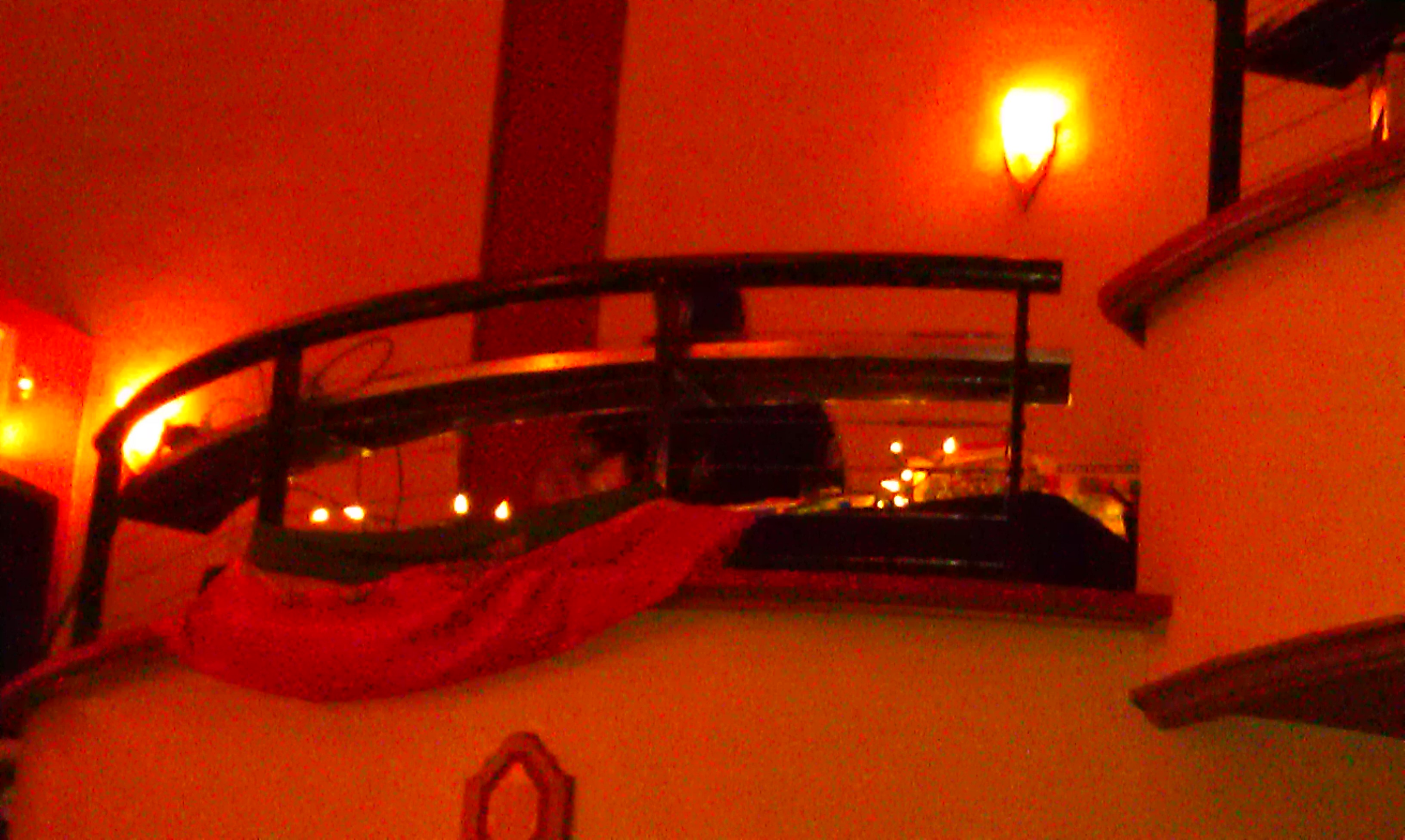 They opened the doors shortly after. To my surprise, the balcony was closed that night. So we took a table on the dance floor edge and settled in. We watched the first band finish some setup and listened to the music that the DJ (DJ Trichrome) was spinning from the balcony.