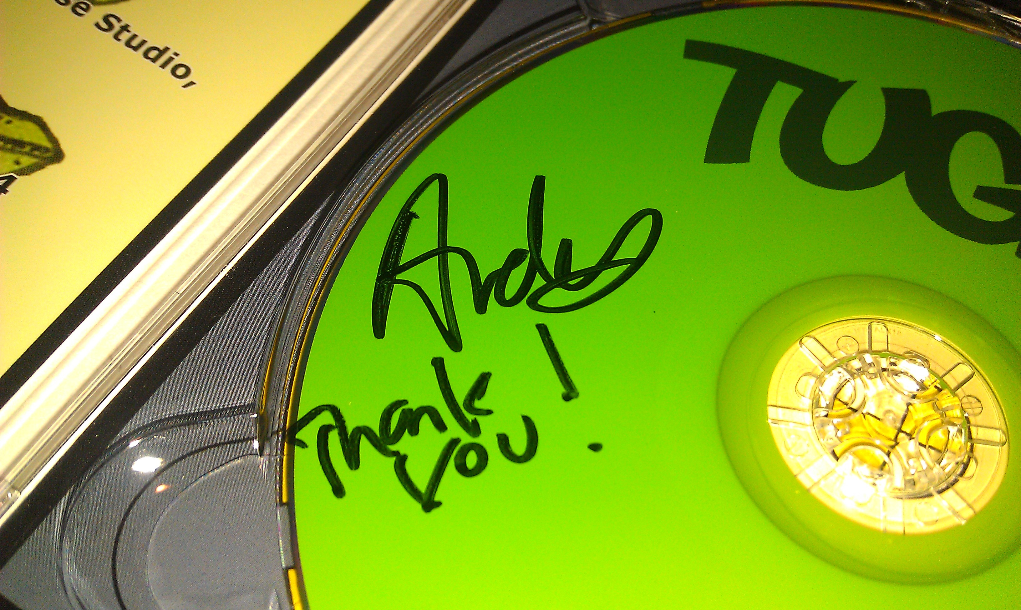 Andy had by then made his way to the merch table and so I unwrapped the CD and asked if he could sign it while I told him I totally dug the show and couldn’t wait to see them again some time. He thanked me for coming with a huge smile and signed the CD.