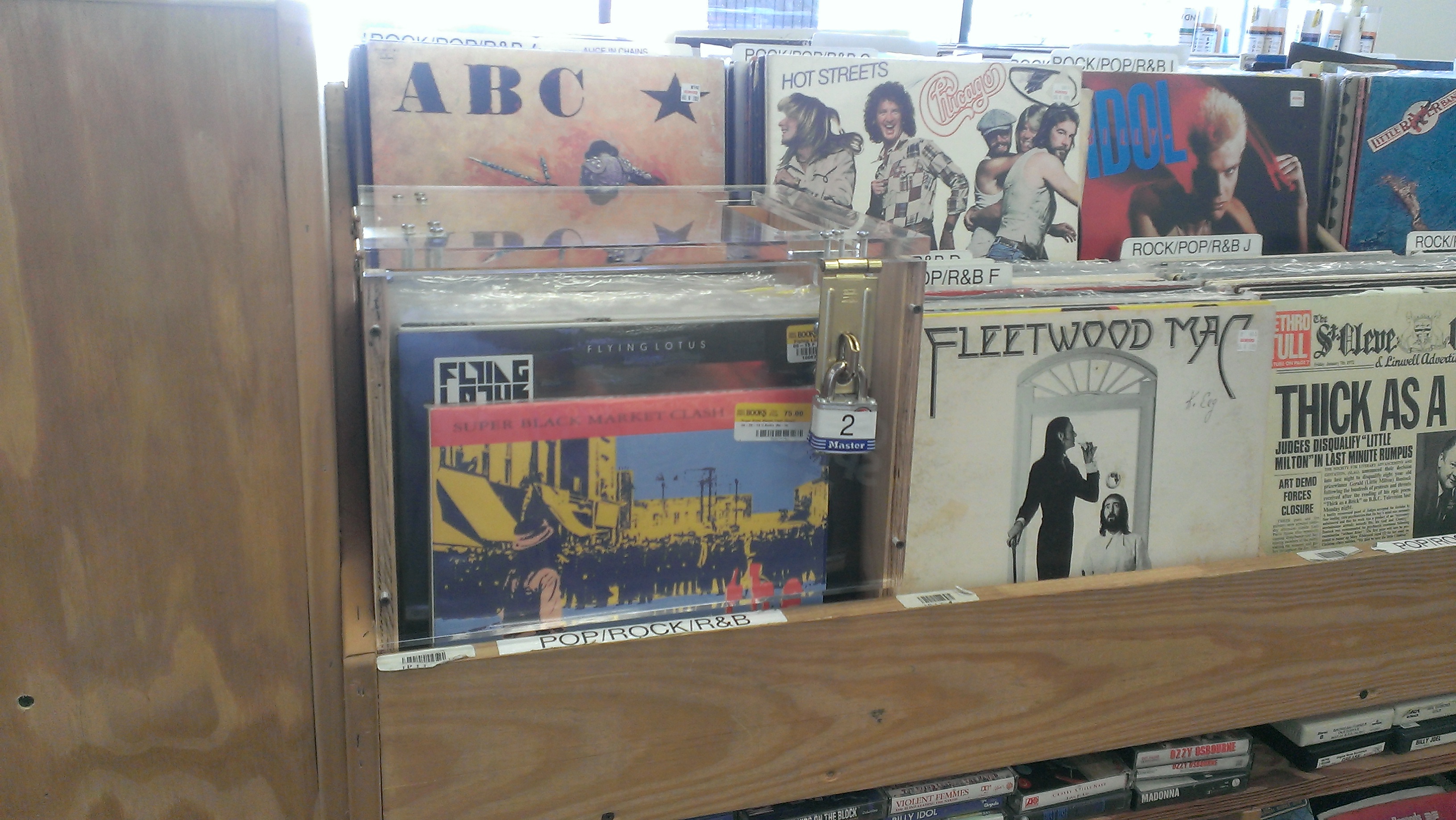 Half Price Books on the West Side has changed it’s setup in the record section a little bit. There are now 2 plexiglass cases for high dollar records.