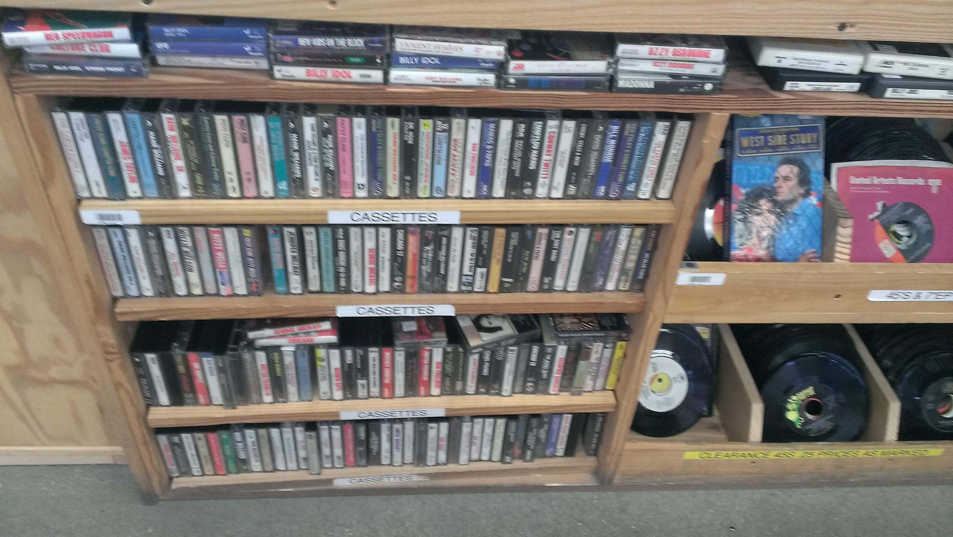 Cassettes (those are new) and the 45’s and 8-Tracks have been given bins and are treated a bit better than the pile they were in before.
