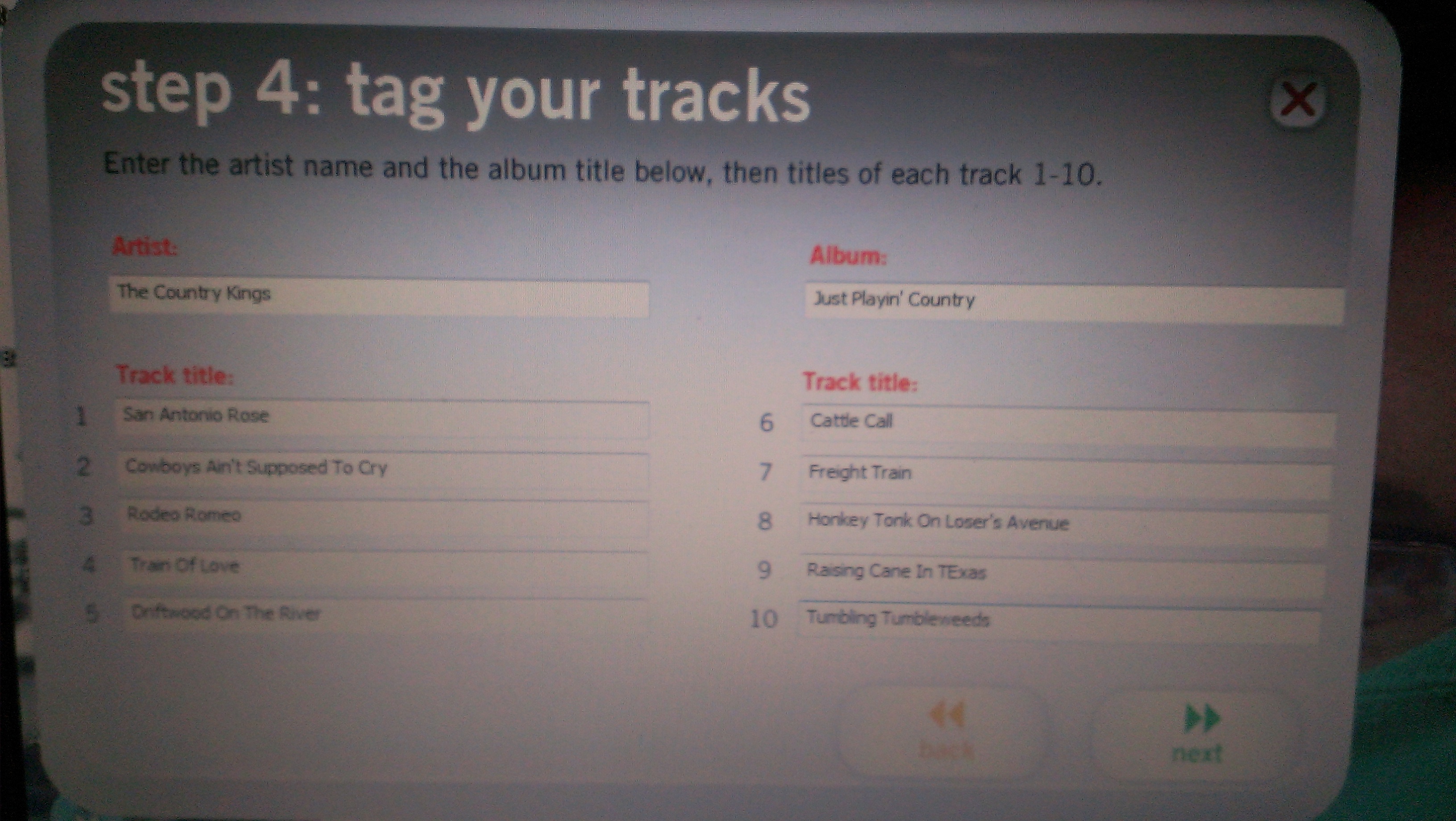 Once the album was done, the software, which broke the songs out into tracks by dividing them by the silence gaps between songs, presented a screen for me to fill in the track names.