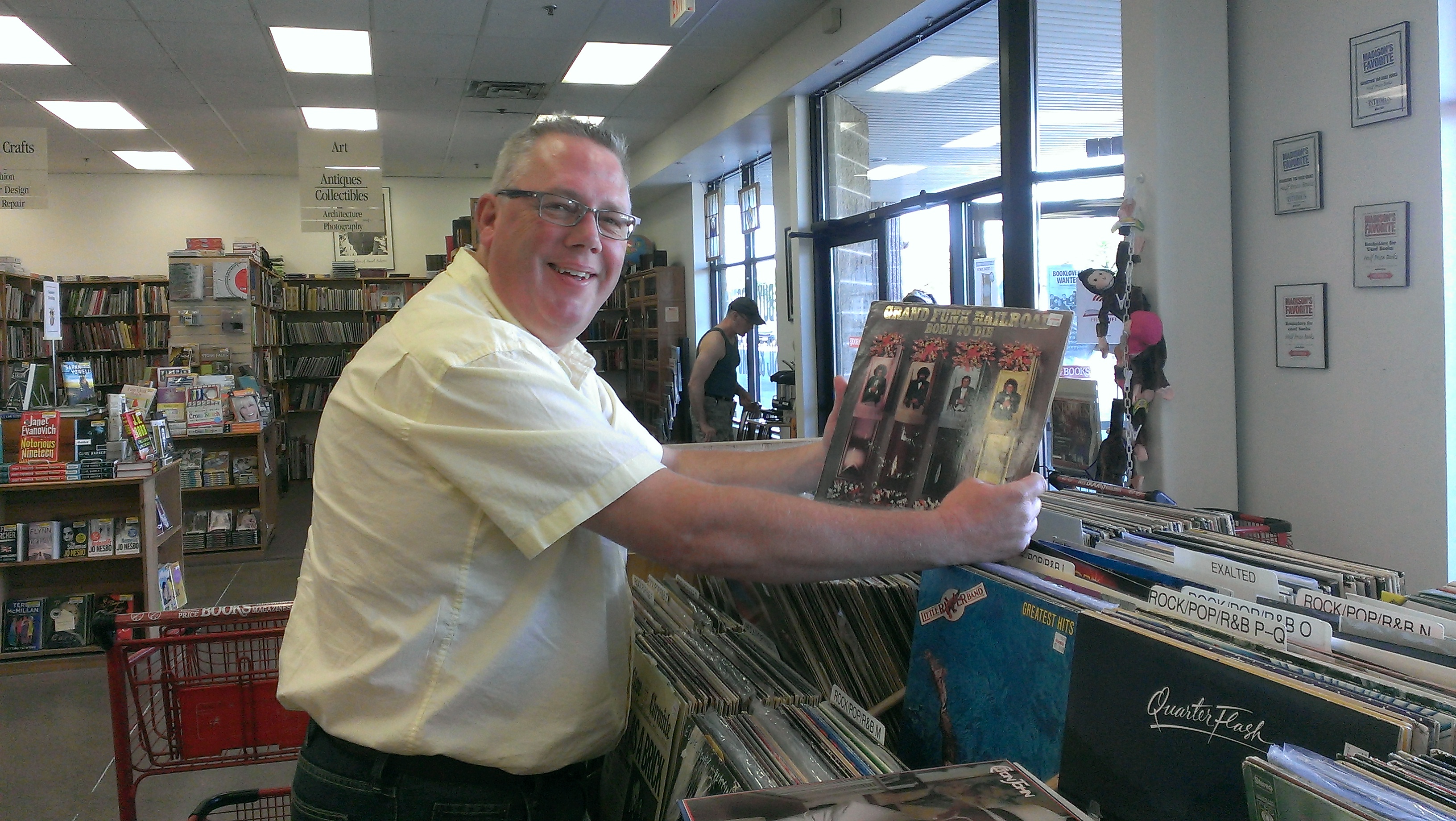 This was the first time in years that Bret had record shopped. He still has records, and an amazing “actual” record player to play them on. I have perused his collection. Good stuff.