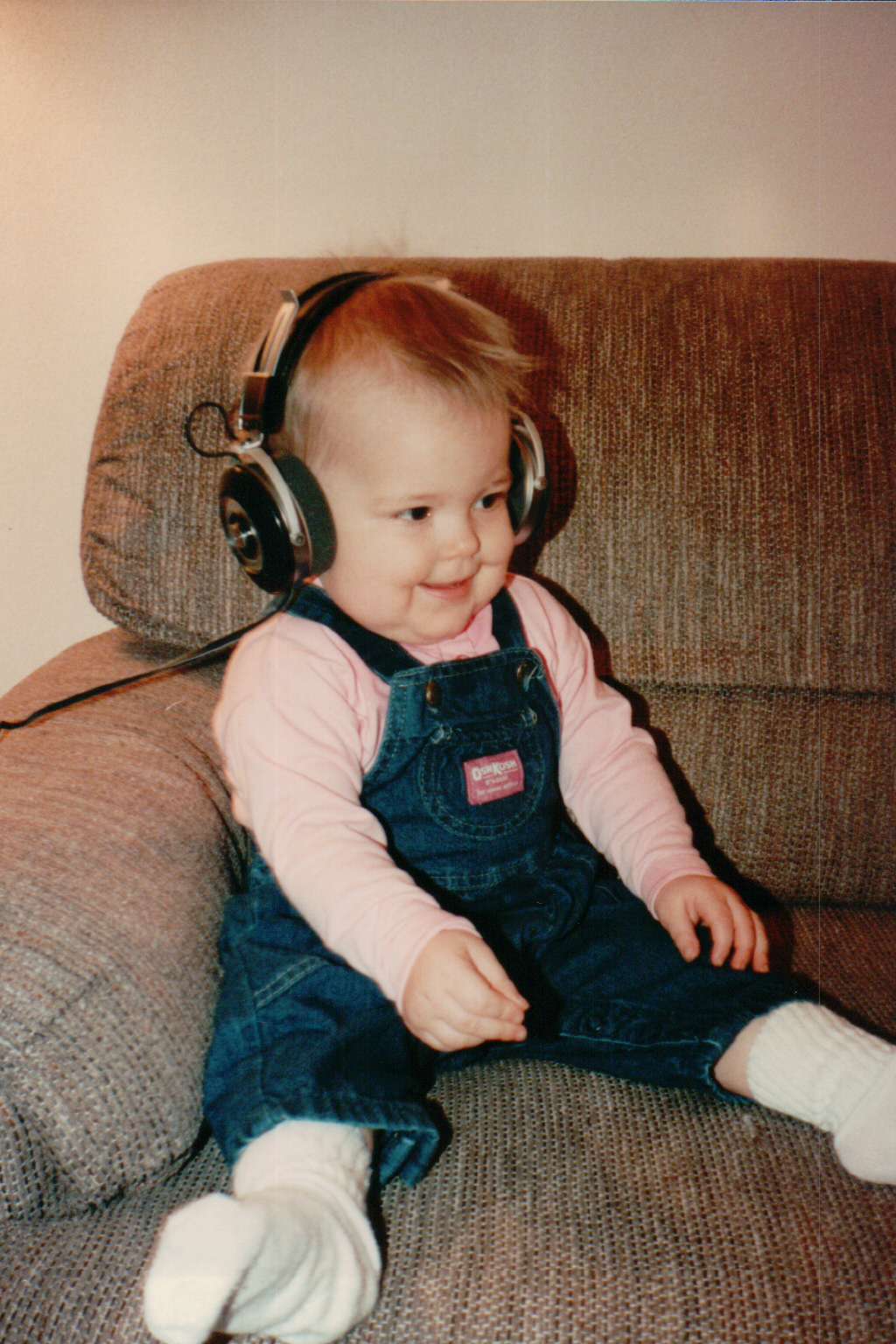 Abbey with headphones. I subjected her to a lot of music. She survived.
