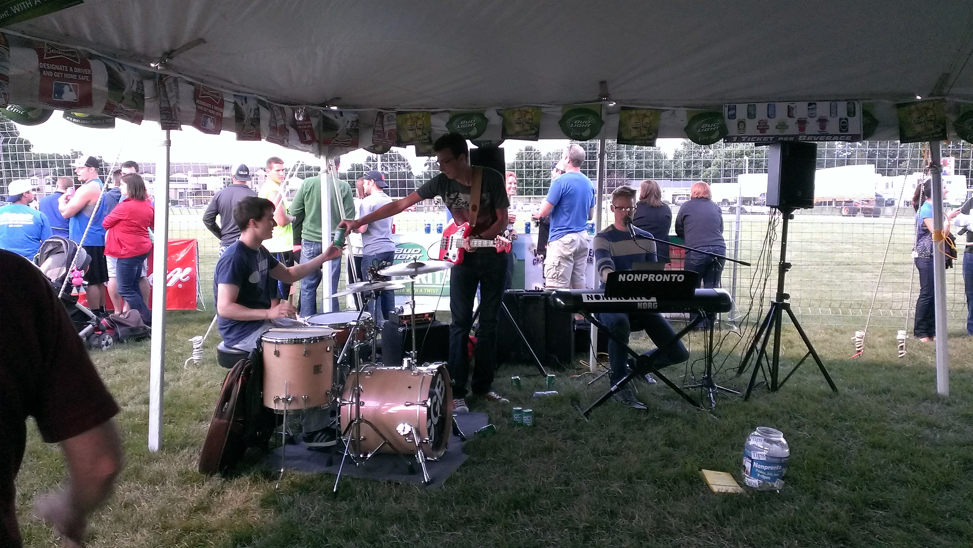Under this tent, Nonpronto was set up in the corner. Drums, bass, and Dan on his keyboard. It seemed surprisingly simple for a setup, but, the music they were making, pumping from those little speakers was great!