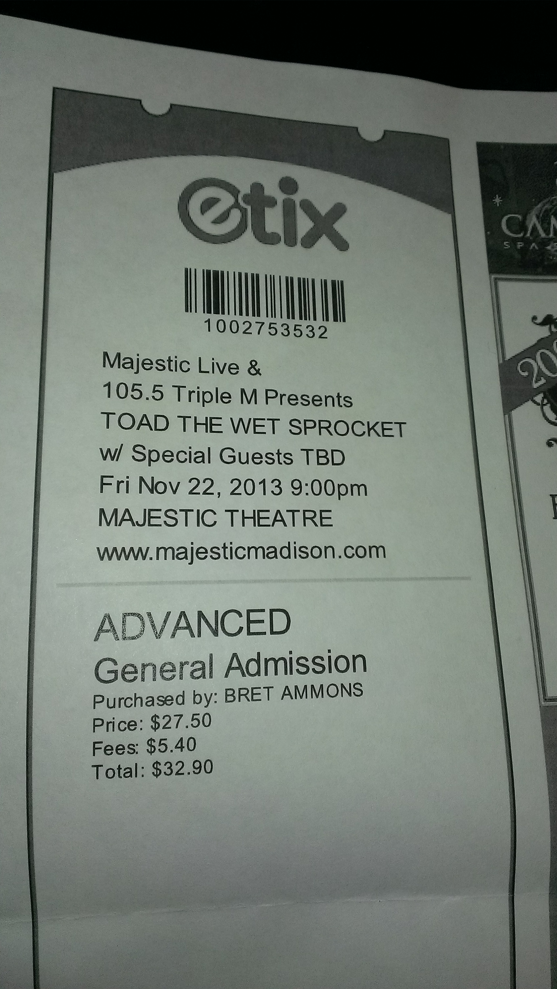 I went to see Toad The Wet Sprocket at The Majestic with Bret.