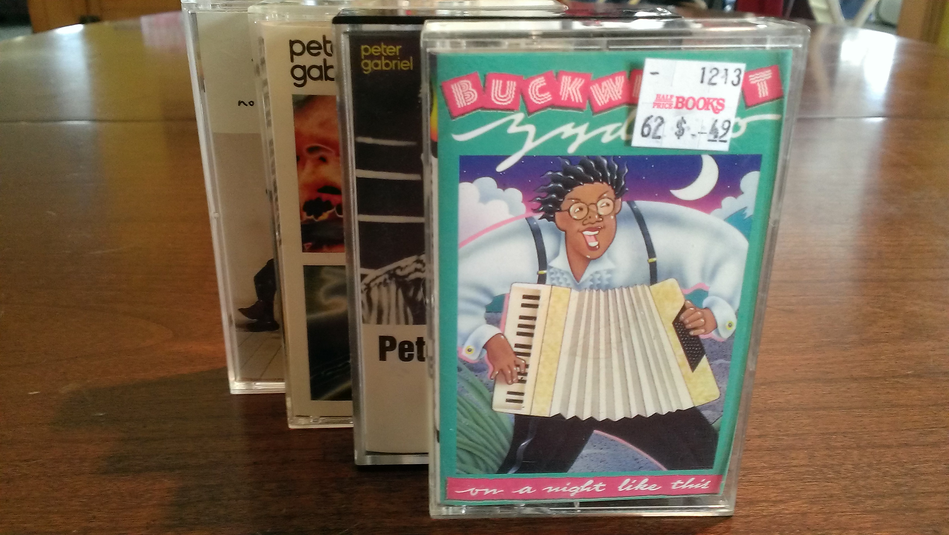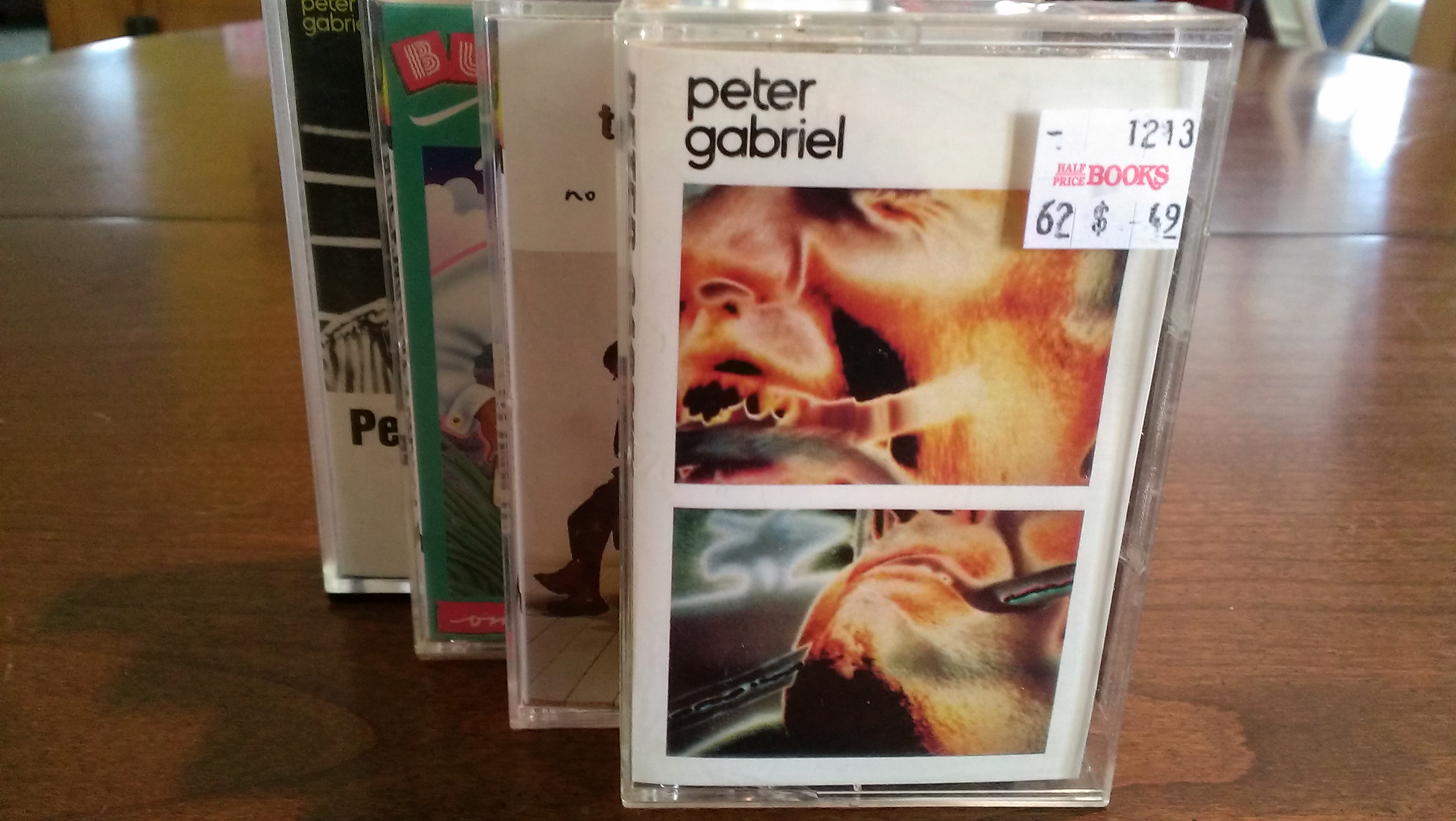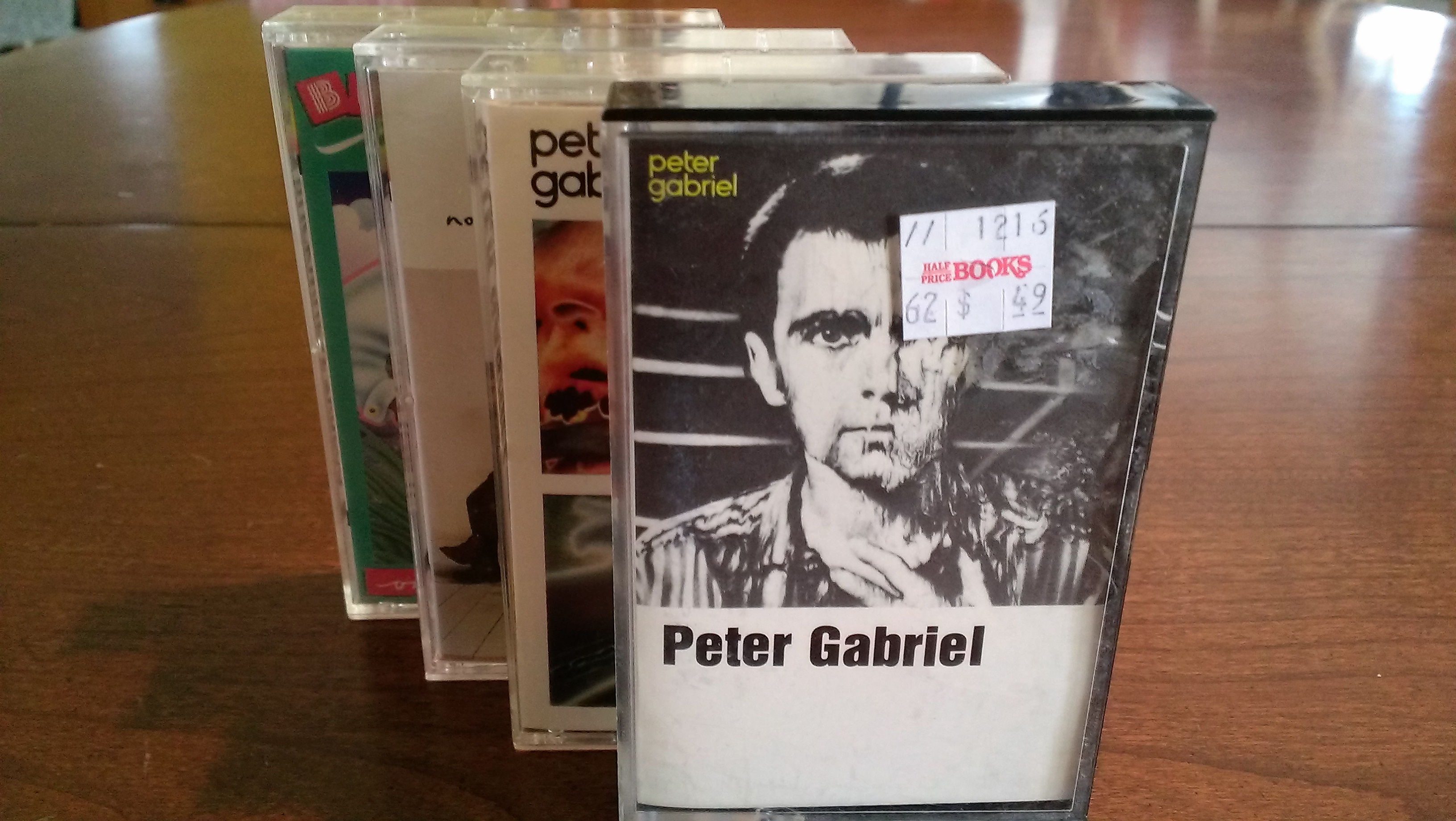The first tape that I noticed was a Peter Gabriel solo album. I picked it up, put it down, and then a few selections later came across another solo Gabriel. I love “Sledgehammer” and a few others and must say I have never really given Peter a chance. So, I decided to get them both and give Peter Gabriel a chance. I got 2 other tapes too.