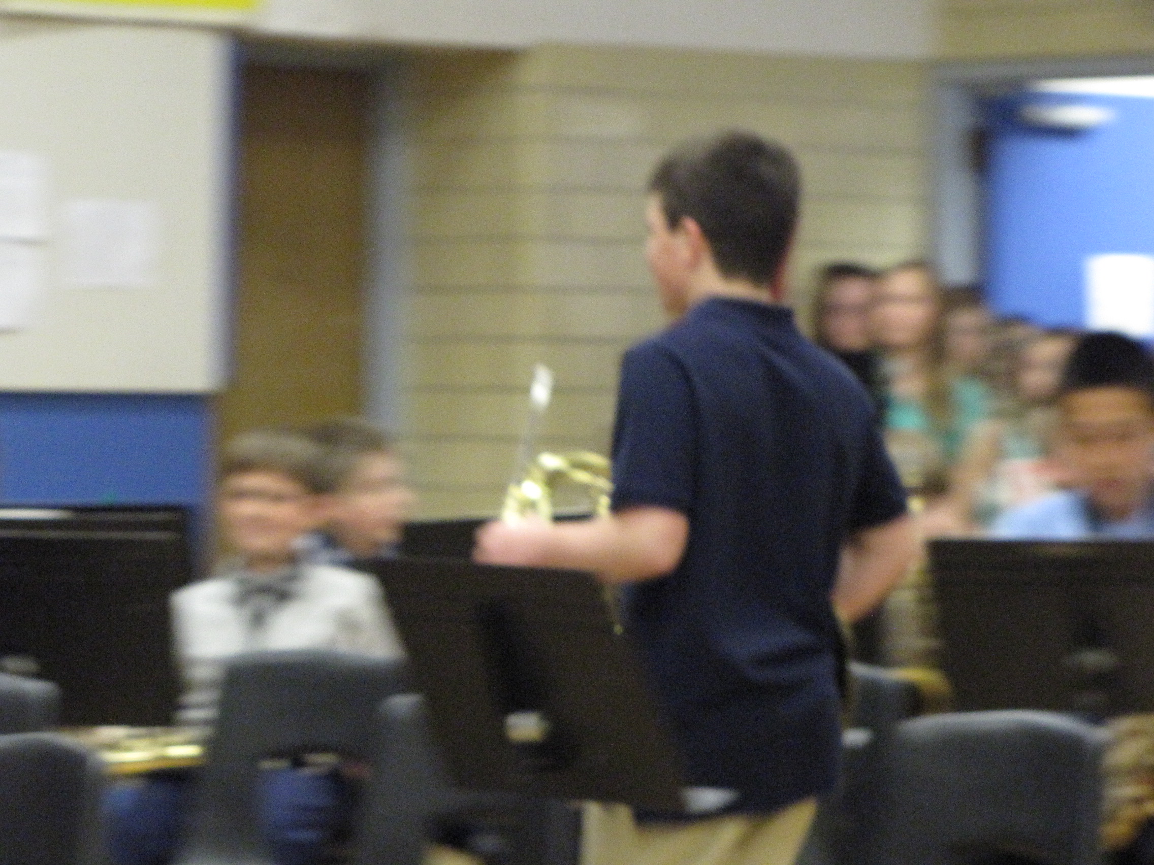 Tonight was the Waunakee Intermediate School 6th Grade Band Concert. Joe plays French Horn and was magically elusive as he walked in. I didn’t get many good shots. He played trumpet before and was more towards the end and I got good pictures. This show he was in the middle of the middle row, French Hornville. Except for a couple of his smile, and scowl when he caught me taking pictures, these were it.
