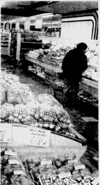 Inside there a produce area, about 8 stock aisles, freezer aisle in the middle and going right at the end of the produce section you can see in this shot was the deli/deep-fried food factory. It got a lot of night time and bar time action.