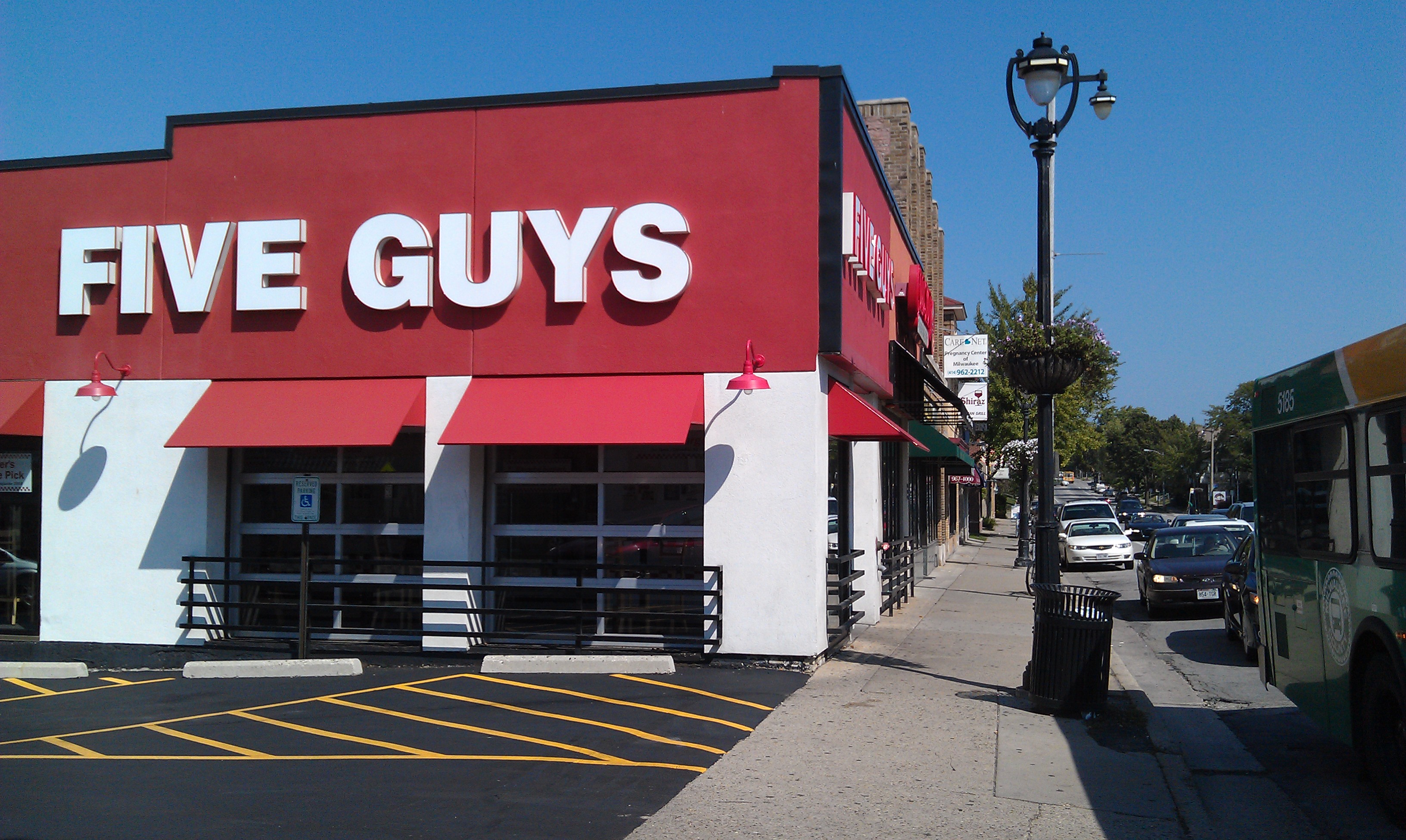 These days it is a Five Guys burger place. When I took Max to start UW Milwaukee I stopped there and took pictures of the building. That’s how deeply my time there impacted me. I was nostalgic for the building. The Cold Stone side was the front produce area and the registers were on the left, just inside the doors of the Five Guys side. This shot is from Google.