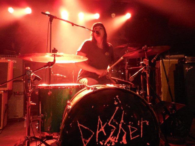 To say that Kylee is intense is right on the mark. At one point froth was dripping from her mouth. I am not kidding. She bashed her mix and match drum set with a fervor that was ferocious. Her vocals and facial expression matched. I couldn’t really make out the words, but again, it didn’t seem that important to the feel of the experience. That’s funny coming from me, a guy who hates when vocals are buried in the mix of any song, but here, with Kylee 2 feet away from me… the words were superfluous. She was like a caged animal. After some of the songs she got up from the drum seat and walked around the stage a bit, like she was shaking off the last song before storming into the next.