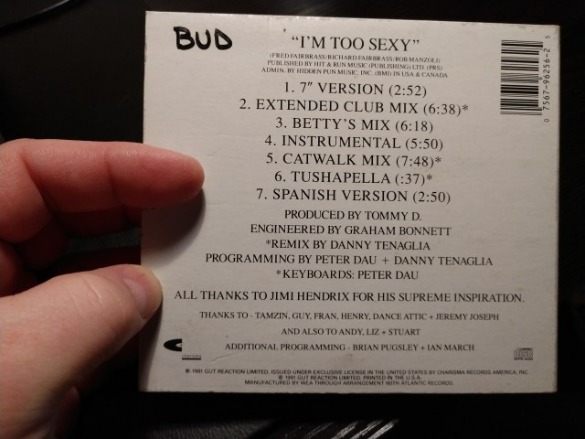 One thing I don’t remember from my cassingle is the “All Thanks To Jimi Hendrix For His Supreme Inspiration” part. Hendrix? Interesting.