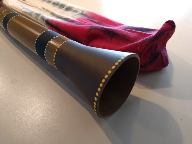 At dinner several nights later, I “confessed” to my wife that I had bought a didgeridoo. I don’t know what I expected but she was cool about it. I told her it was a cheap synthetic didg, but that it would be a chance to see if I had any didg chops or a real interest. She said, “well, it’s not a real didgeridoo, but it will didgeridoo”. Thanks Cyn.