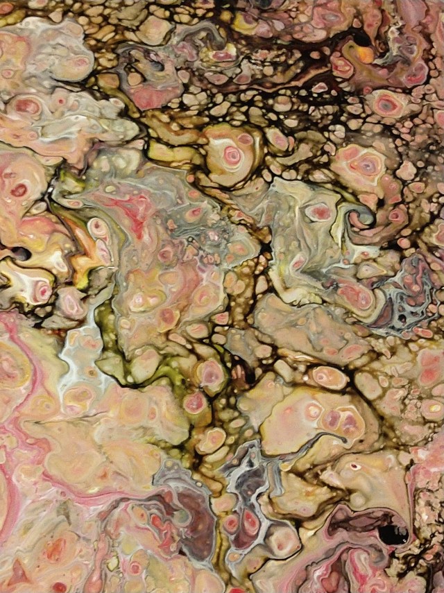 After watching that I spent a few weeks watching Deby from the previous video and others doing various methods of acrylic pour painting and learned all the jargon. Swipes, floats, dirty pour, flip cup… and lots more. I was fascinated how a little cup of mixed paints could produce such fascinating results.