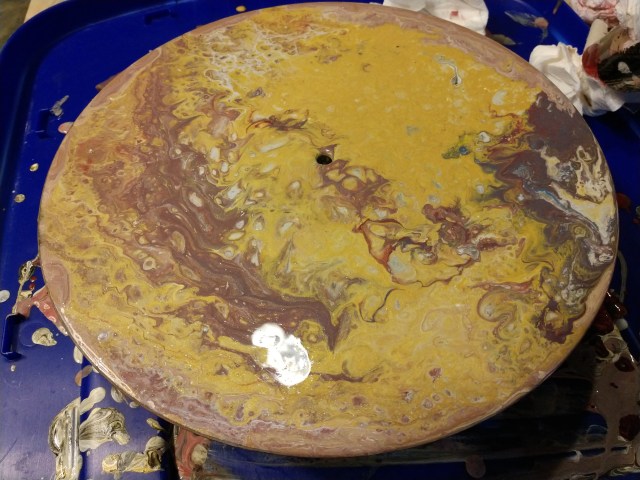 As with the didgeridoo, I found myself one day in the rabbit hole that is YouTube. I was looking to see if anyone made birdhouses from records (they do) and I ended up several videos later on a video called Double Dirty Swirl Acrylic Pour on a Vinyl Record. I laughed at the title, but when I saw it, I went from laughing to going… “that is frickin cool!”