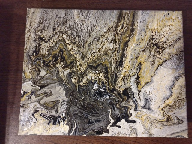 So, I tried it again. This time I used the same colors, made them thinner, and used more paint. I grabbed a canvas this time and gave it another go. It poured, thinner this time, and I was able to cover the whole canvas, touched up the edges and gave it a bit of the ole micro torch. It worked!