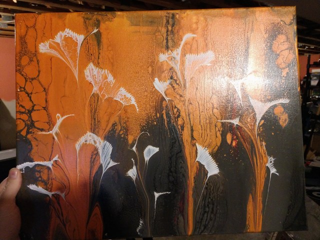 Technique, paint thickness and quantity all work together. I’m getting a little better at the canvas pouring as well, incorporating more technique other than just doing a straight pour.