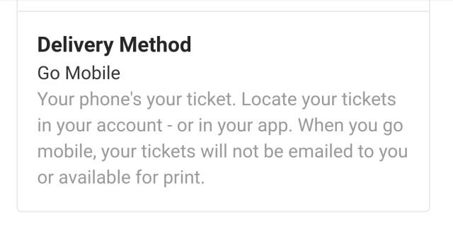 Yes, this is my first time where my technology gets me into the show and not a tiny piece of paper. It even teases me mentioning that these other methods might be available in other circumstances.