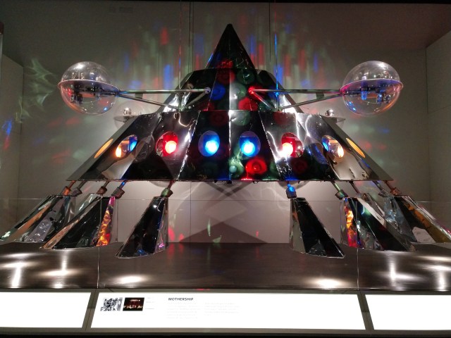 There were snippets of all the music in the bins in a computer console table that you could play by pressing them. Very cool. We did a clockwise route through the room which turned out to be the historical through the ages path and ended up seeing the 50’s and 60’s and such amazing stuff as the actual P-Funk Mothership.