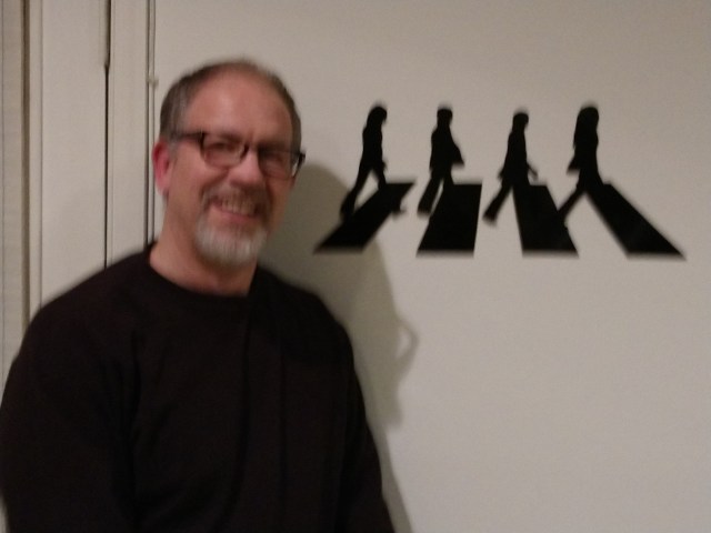 As the evening wound down Alan looked over my digital music and books and put up the gift I had brought for him. Abbey Road vinyl cutouts.