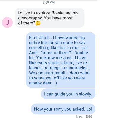 Here is an actual text exchange with my friend Josh.