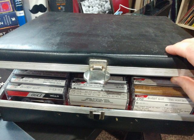 I have had a small box like this for years. That Buddy Guy & Junior Wells at Biddy Mulligan’s bootleg tape was awesome and somehow I don’t have the tape anymore, but still have the box. Is it one of these unlabeled tapes? Who knows. Maybe. Jeff Healey A and B, great but which albums and where is the box?